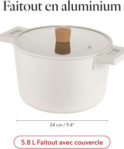 FLORINA Nube Casserole en aluminium | 24 cm | 5,8 l | Compatible induction | Revêtement céramique anti-rayures | Poignée Soft-Touch aspect bois | Couvercle en verre résistant à la chaleur