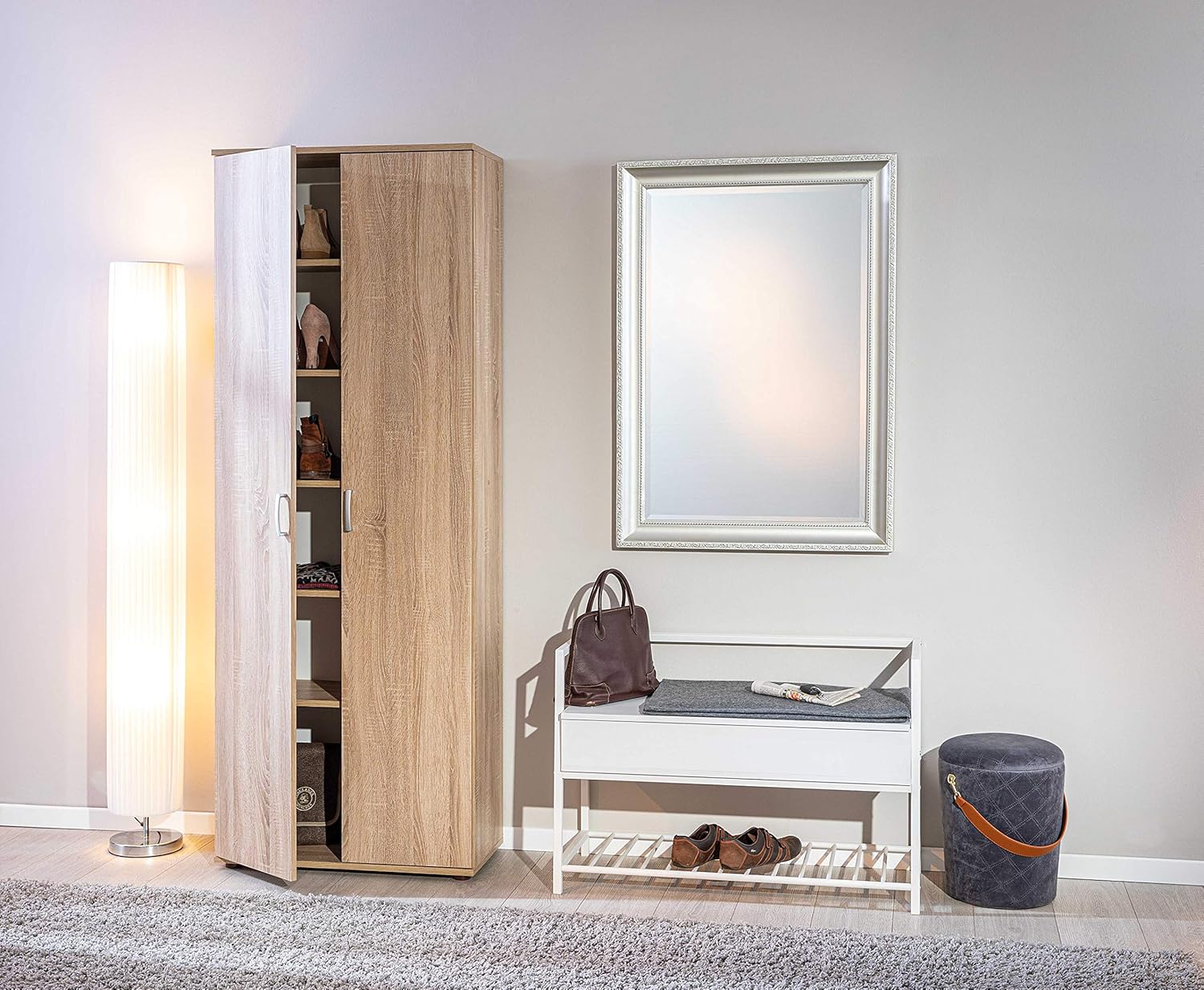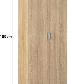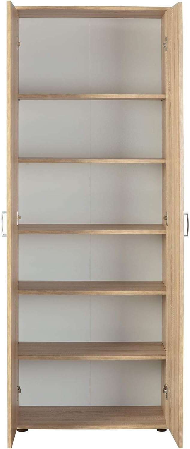 Inter Link – Armoire multi-usages – Armoire à dossiers – Armoire multi-usages – 2 portes – 5 tablettes incluses – Revêtement mélaminé – Chêne Sonoma – 70 x 34 x 189 cm – Gallo