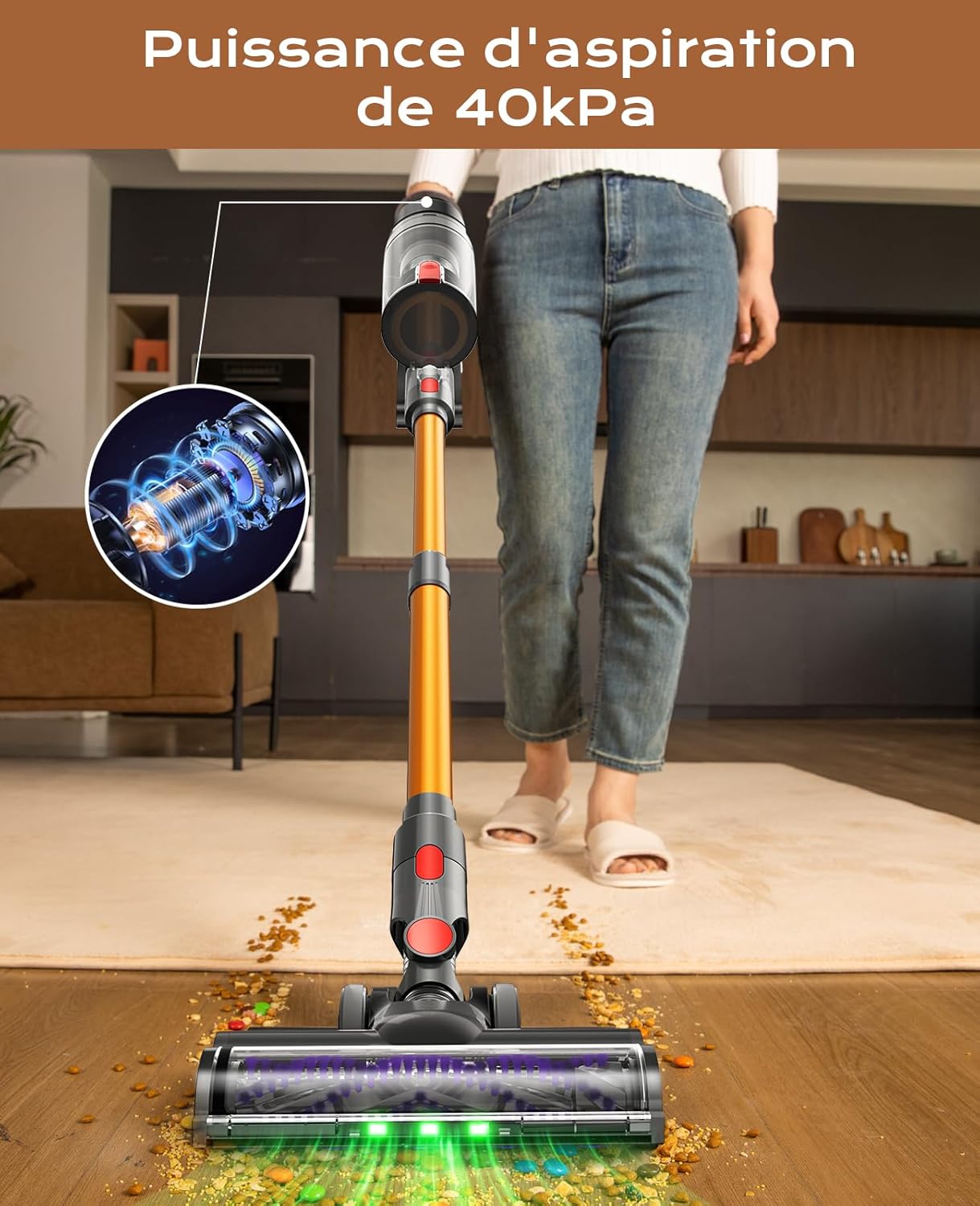Aspirateur sans fil très performant : la puissance d’aspiration et l’autonomie sont excellentes, il enlève facilement les taches et passe bien sur tous les types de sols. Léger et maniable, le rangement et l’entretien sont simples. Très content de l’achat.