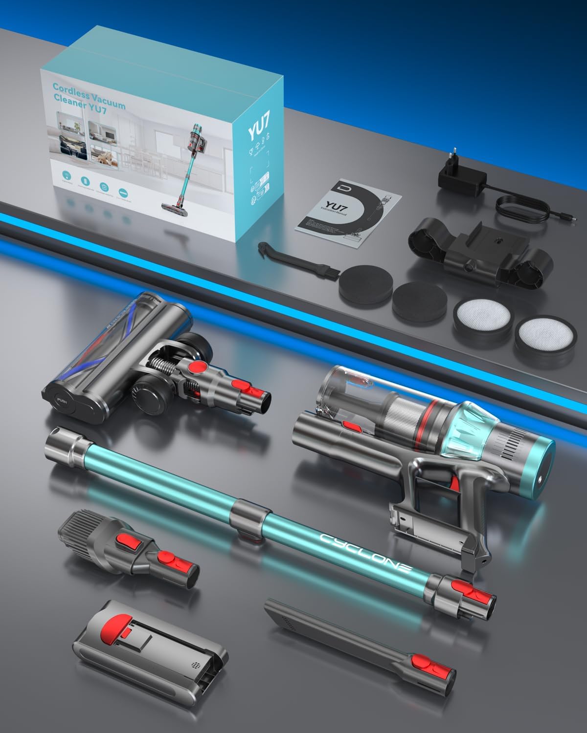 - Moteur sans Balais Haute Performance de 580W: L’aspirateur balai sans fil YU7 est doté d’un moteur sans balais haute performance de 580W, fournissant une puissance d’aspiration allant jusqu’à 47 KPa. Il permet de nettoyer facilement les parquets, carrelages et tapis, avec une efficacité de nettoyage considérablement améliorée.
