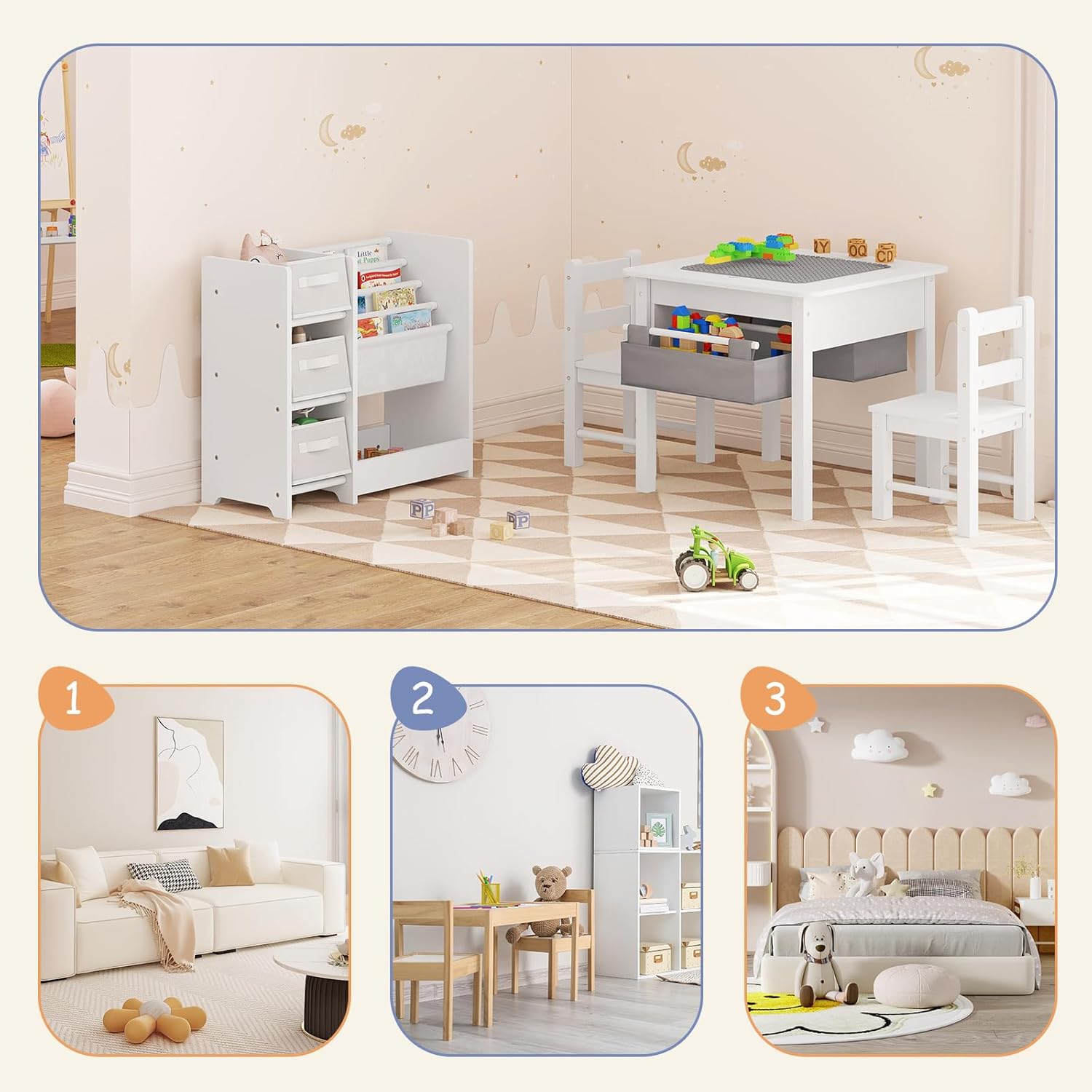 - Pour tous les lieux : L’étagère à jouets blanche est sobre et élégante. Elle convient à toutes les chambres d’enfants, salles de jeux et jardins d’enfants. De plus, elle peut être décorée ou peinte de manière créative pour créer un organisateur unique