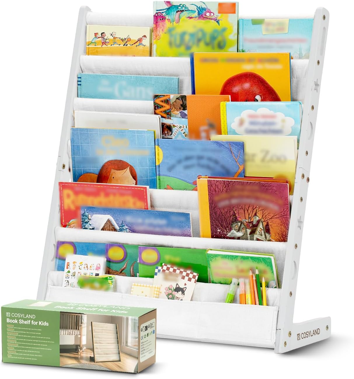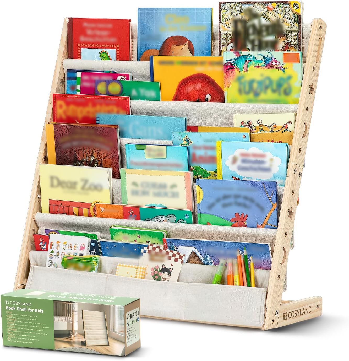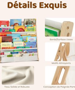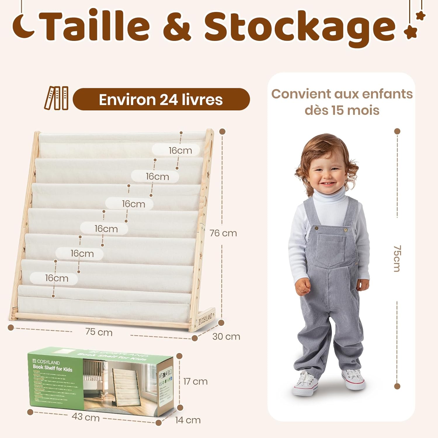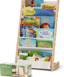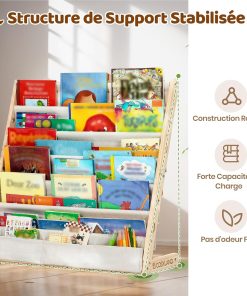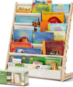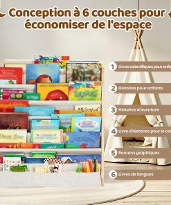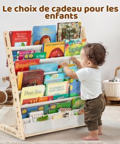 COSYLAND Bibliotheque Enfant en Bois Massif à 7 Niveaux – Etagere de Rangement pour Livres – Présentoir Livres Bebe avec Design Stable – Meuble Montessori pour Chambre d’Enfant (75 cm, Naturel)