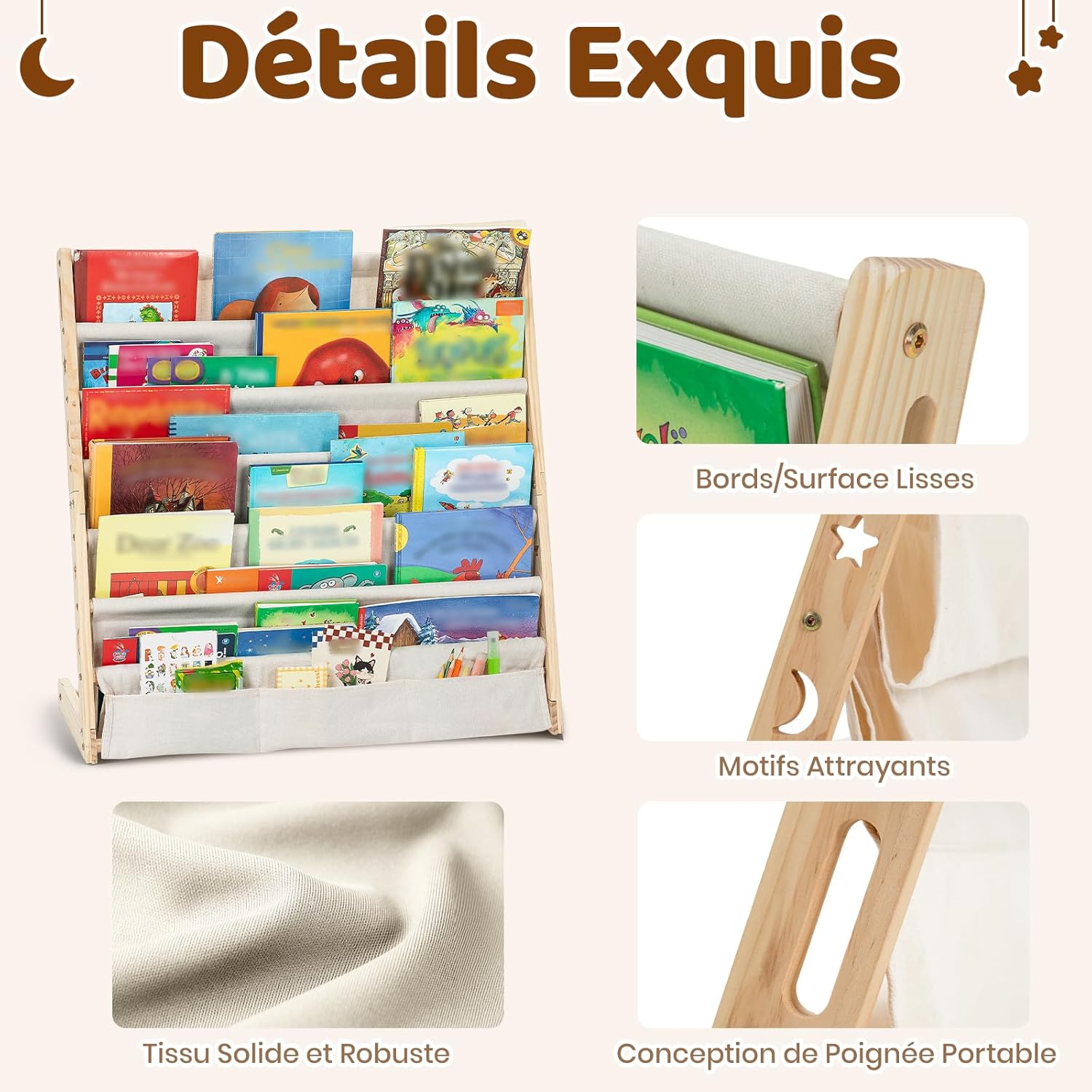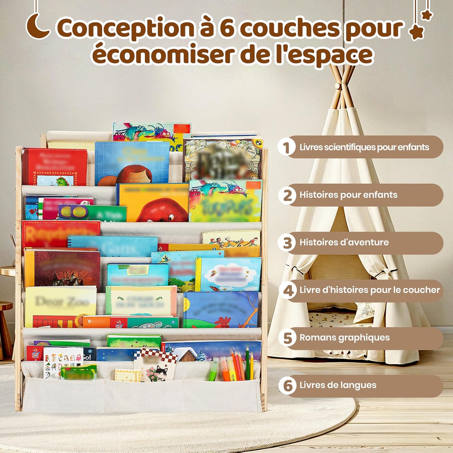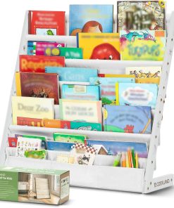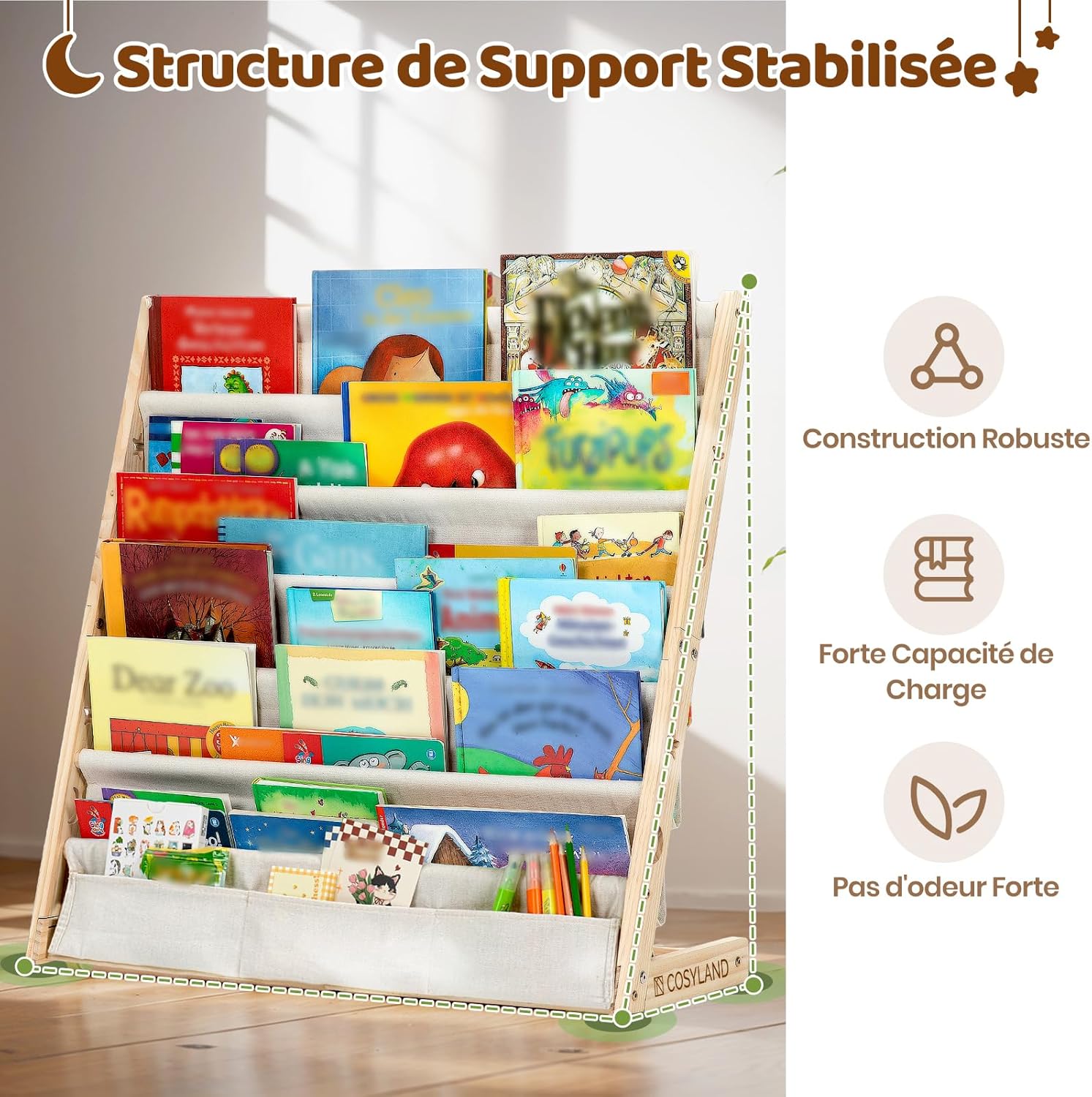 COSYLAND Bibliotheque Enfant en Bois Massif à 7 Niveaux – Etagere de Rangement pour Livres – Présentoir Livres Bebe avec Design Stable – Meuble Montessori pour Chambre d’Enfant (75 cm, Naturel)