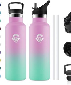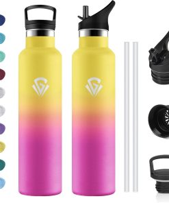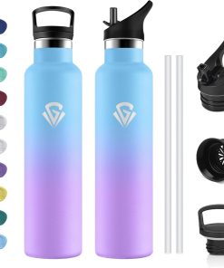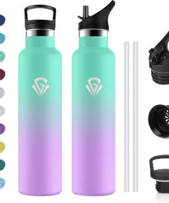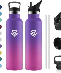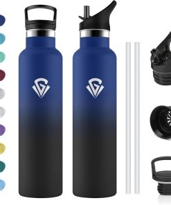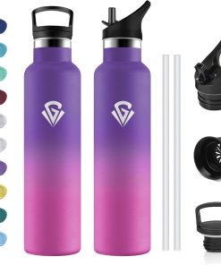 - ★Materiau 100% Sans BPA : Les bouteilles en plastique bon marché libèrent des produits chimiques et altèrent le goût – pas cette bouteille! Fabriquée en acier inoxydable 18/8 de haute qualité, elle est robuste, résistante à l’oxydation et à la corrosion. 100 % sans BPA, sans phtalates et sans plomb pour un plaisir de boire pur.