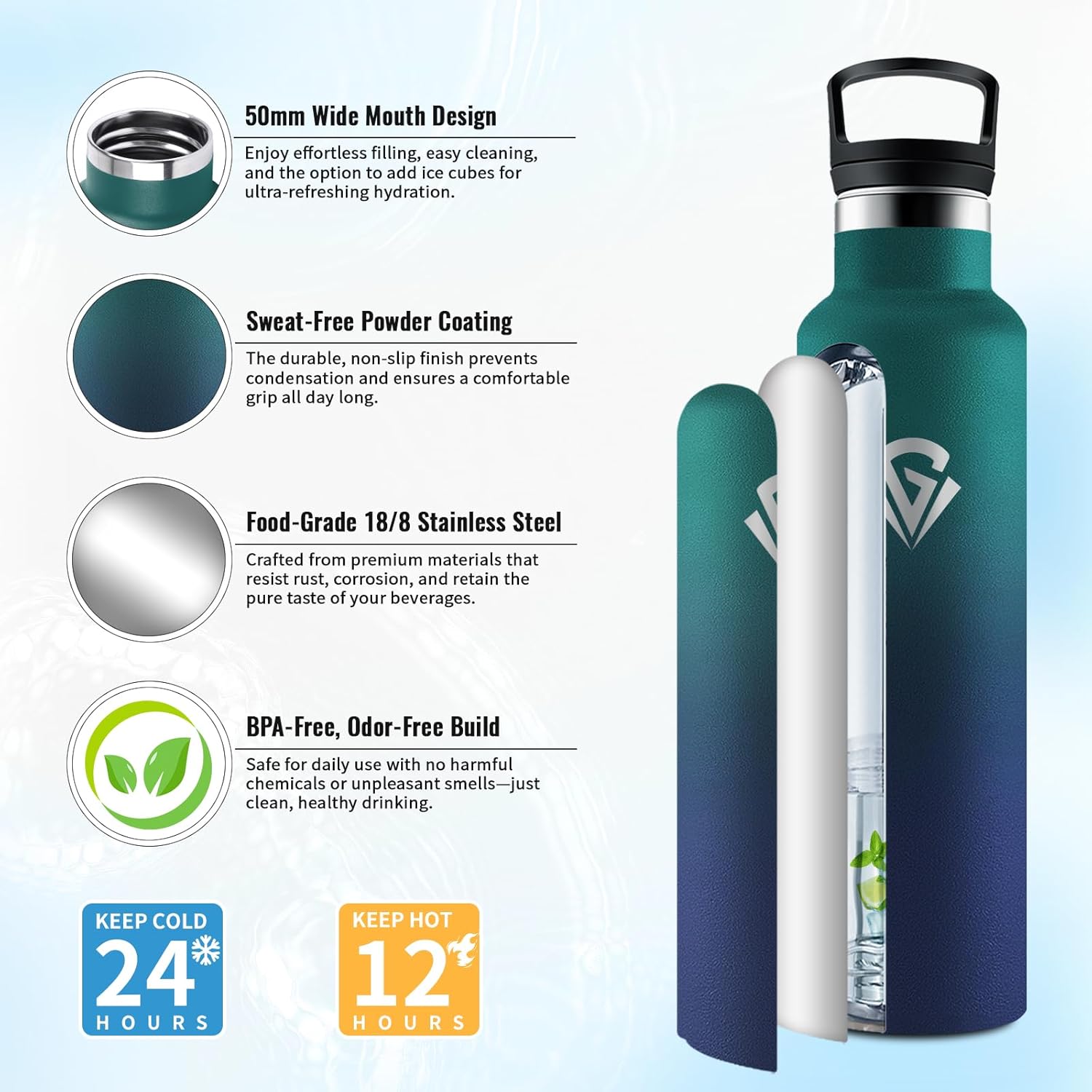 - ★Isolation Sous Vide: Grâce à l’isolation sous vide à double paroi, cette bouteille isotherme compacte de 750 ml garde vos boissons chaudes ou froides pendant des heures. Que ce soit pour un thé ou un café chaud le matin, ou une boisson fraîche lors des journées chaudes, profitez toujours de la température parfaite, même en déplacement!