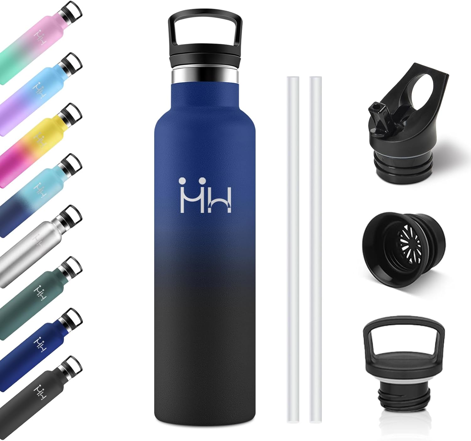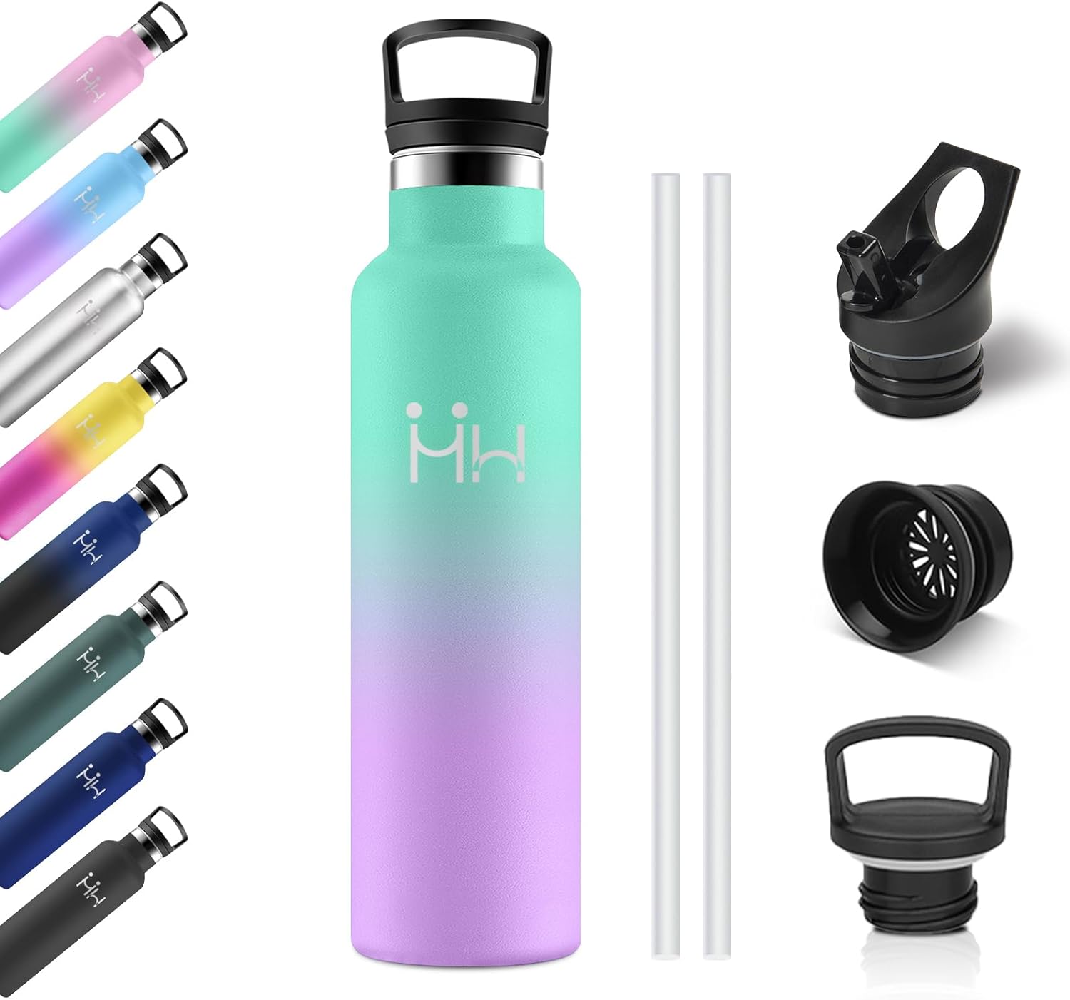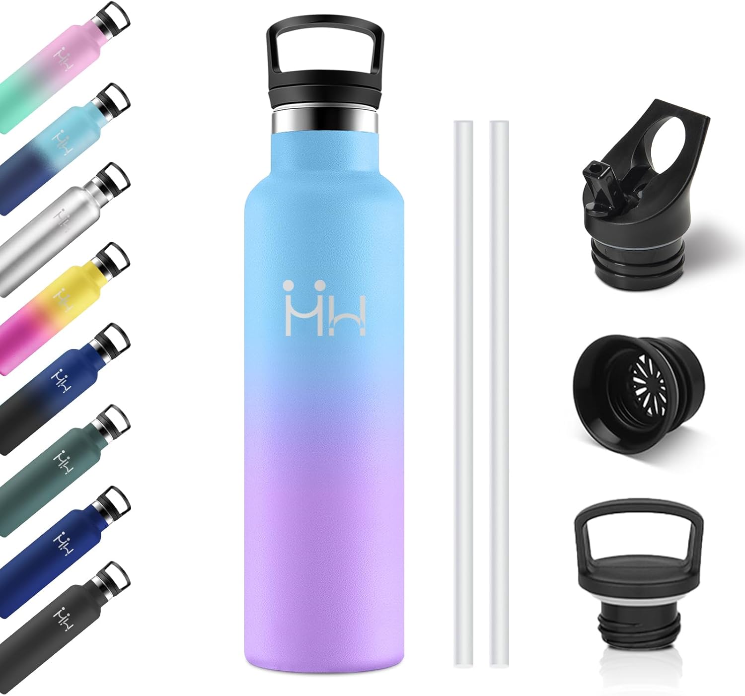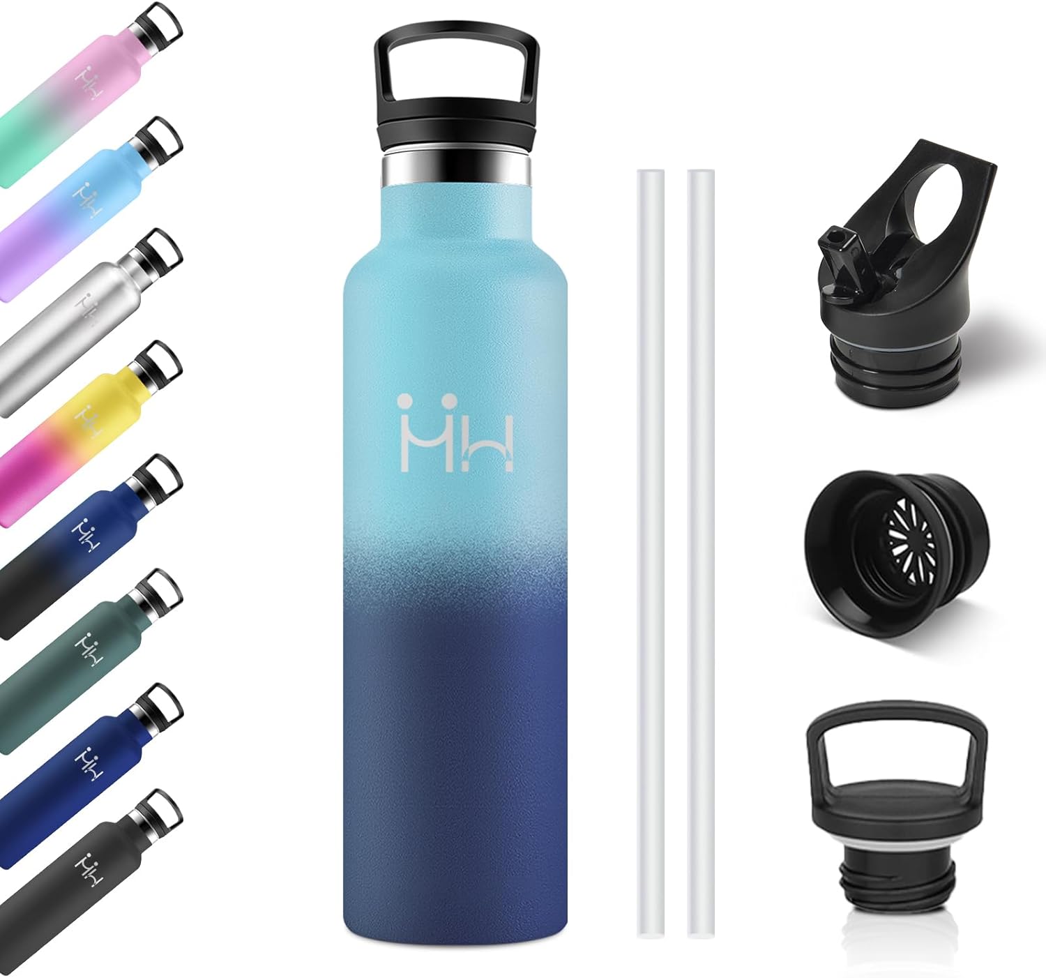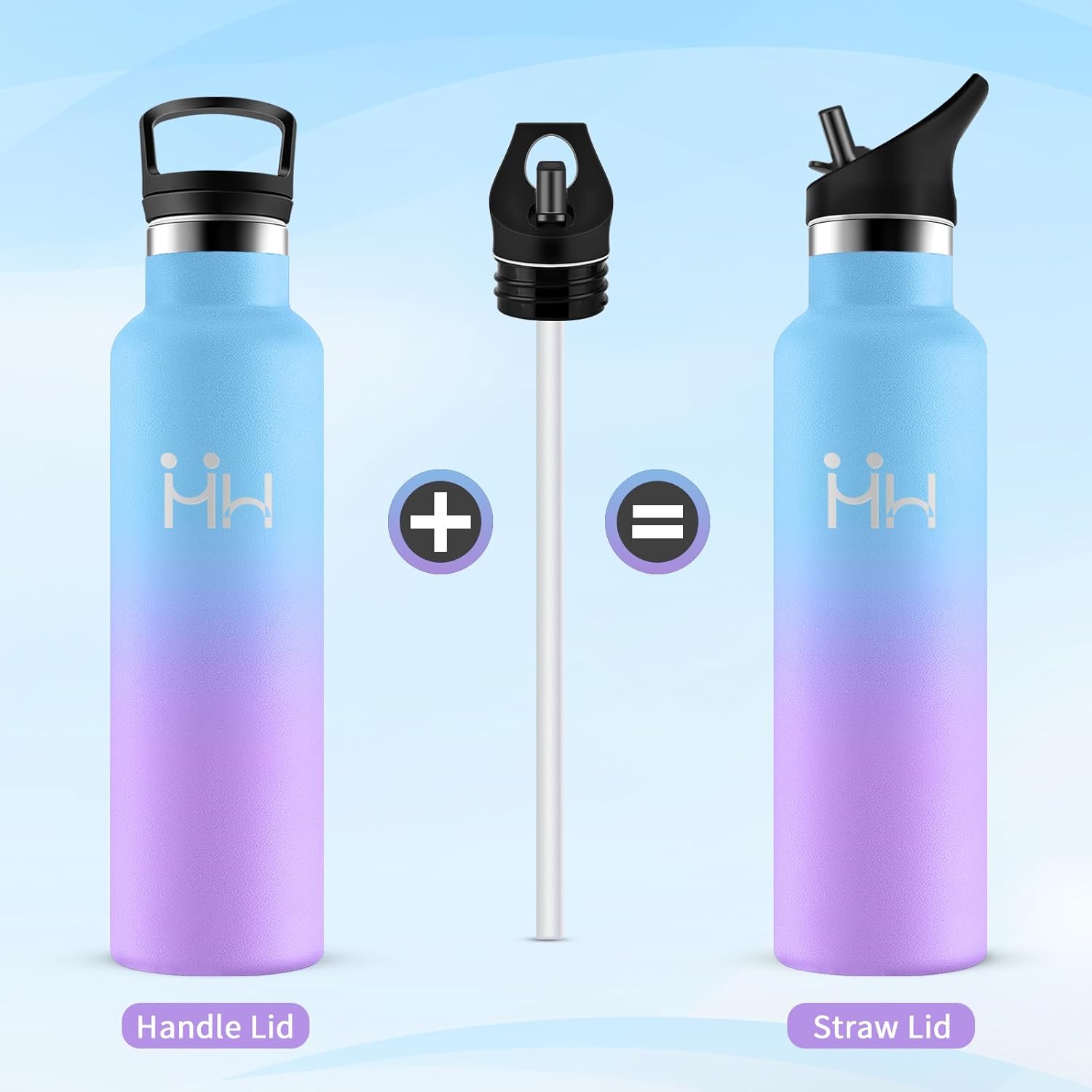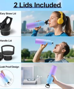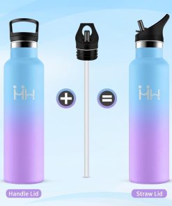Bouteille Isotherme 750ml, Gourde Acier Inoxydable, Isolation À Double Paroi Sous Vide, sans BPA, Gourde Inox avec Paille, Anti-Fuite et Réutilisable, pour Adultes, Sport, École, Randonnée, Jogging