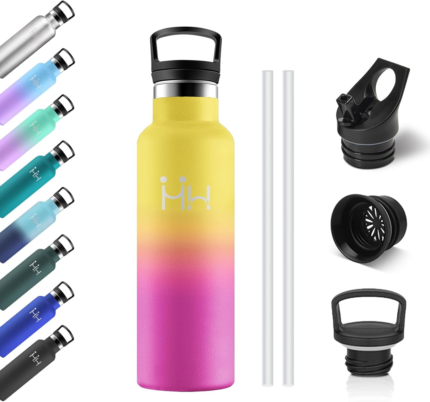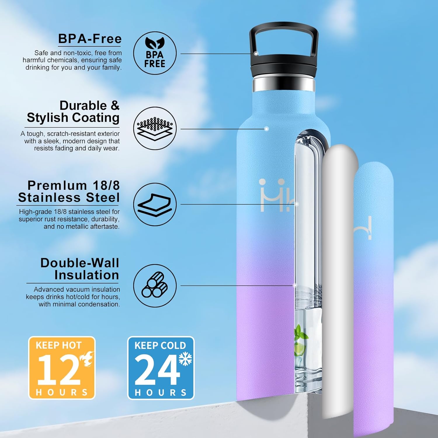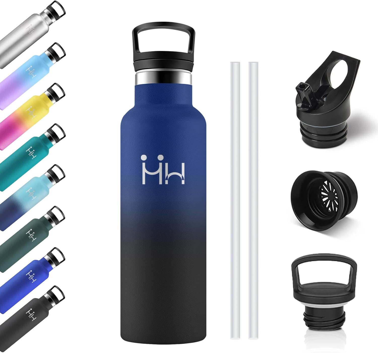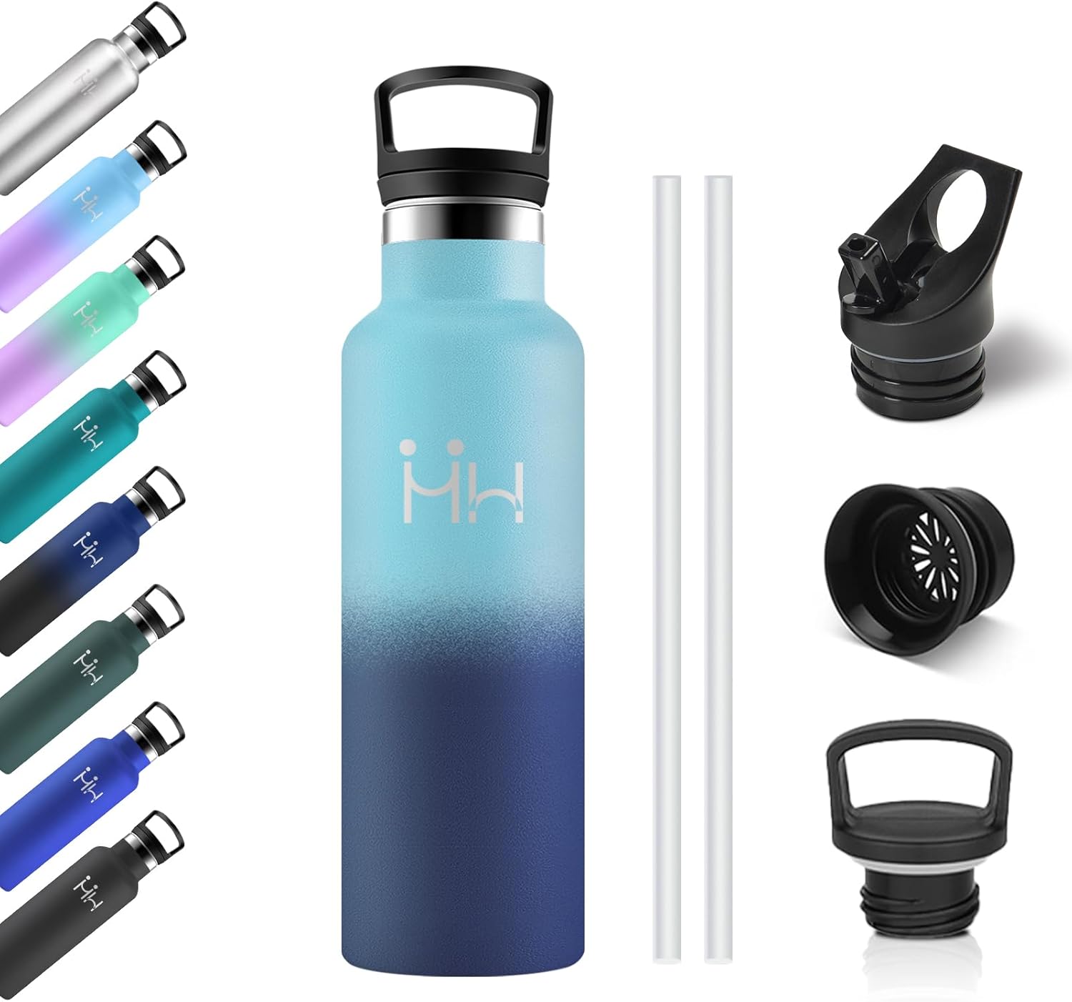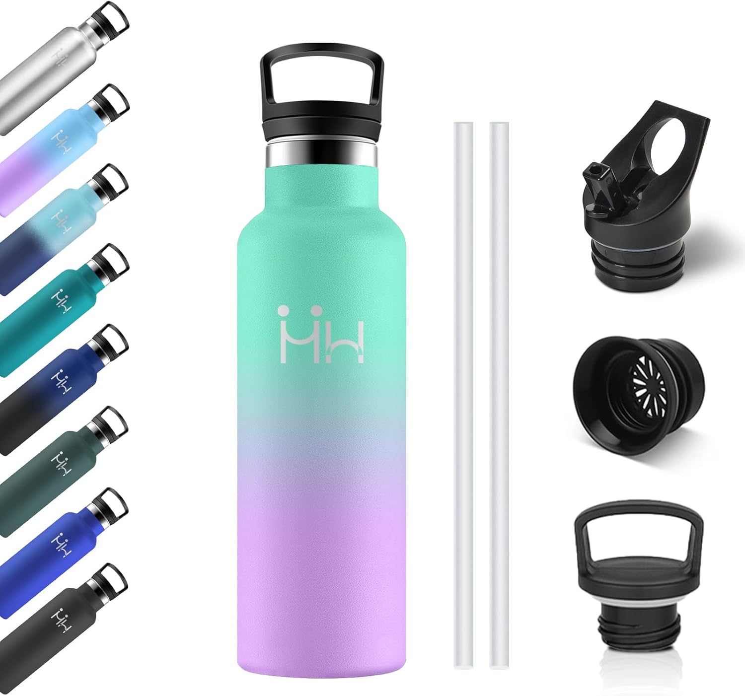 Bouteille Isotherme 750ml, Gourde Acier Inoxydable, Isolation À Double Paroi Sous Vide, sans BPA, Gourde Inox avec Paille, Anti-Fuite et Réutilisable, pour Adultes, Sport, École, Randonnée, Jogging