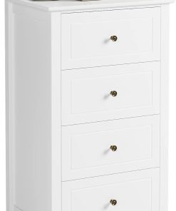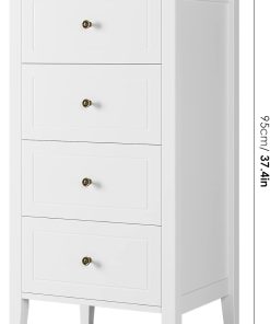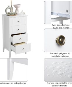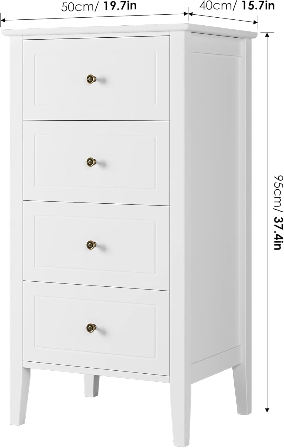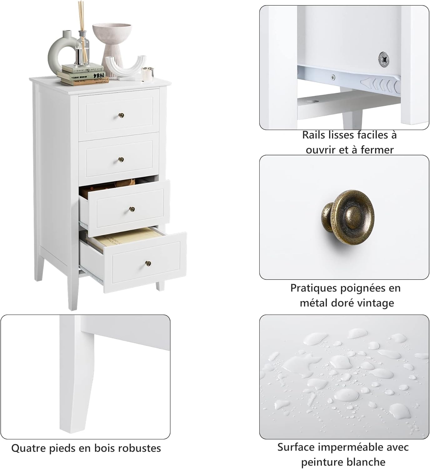 FOREHILL Commode Chambre Commode 4 Tiroirs Petite Commodes Blanche Chiffonnier Meuble de Rangement pour Salon Chambre 50x40x95cm