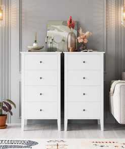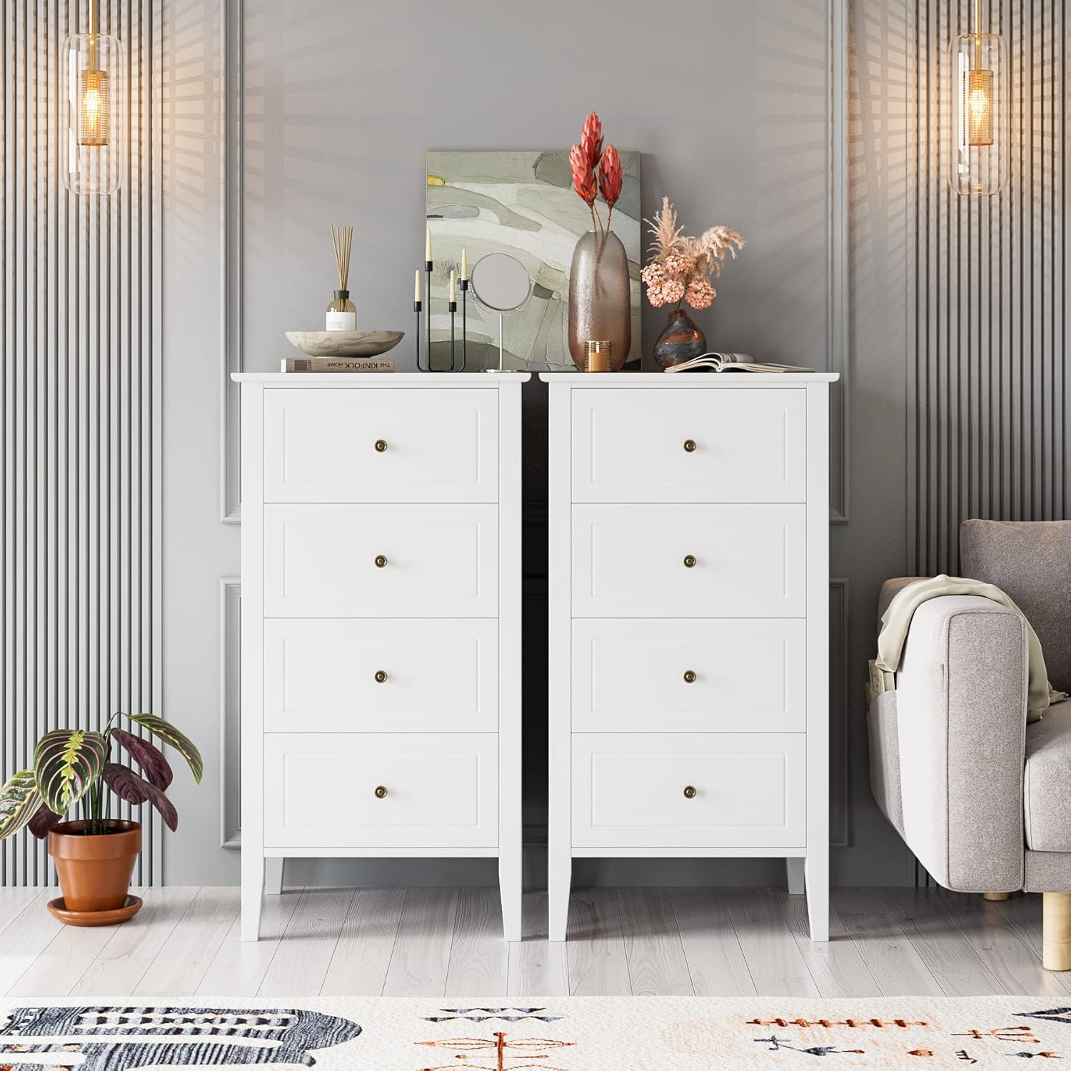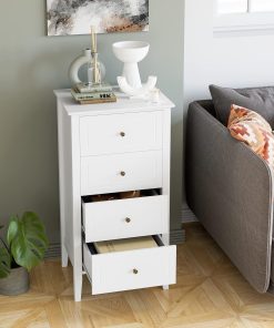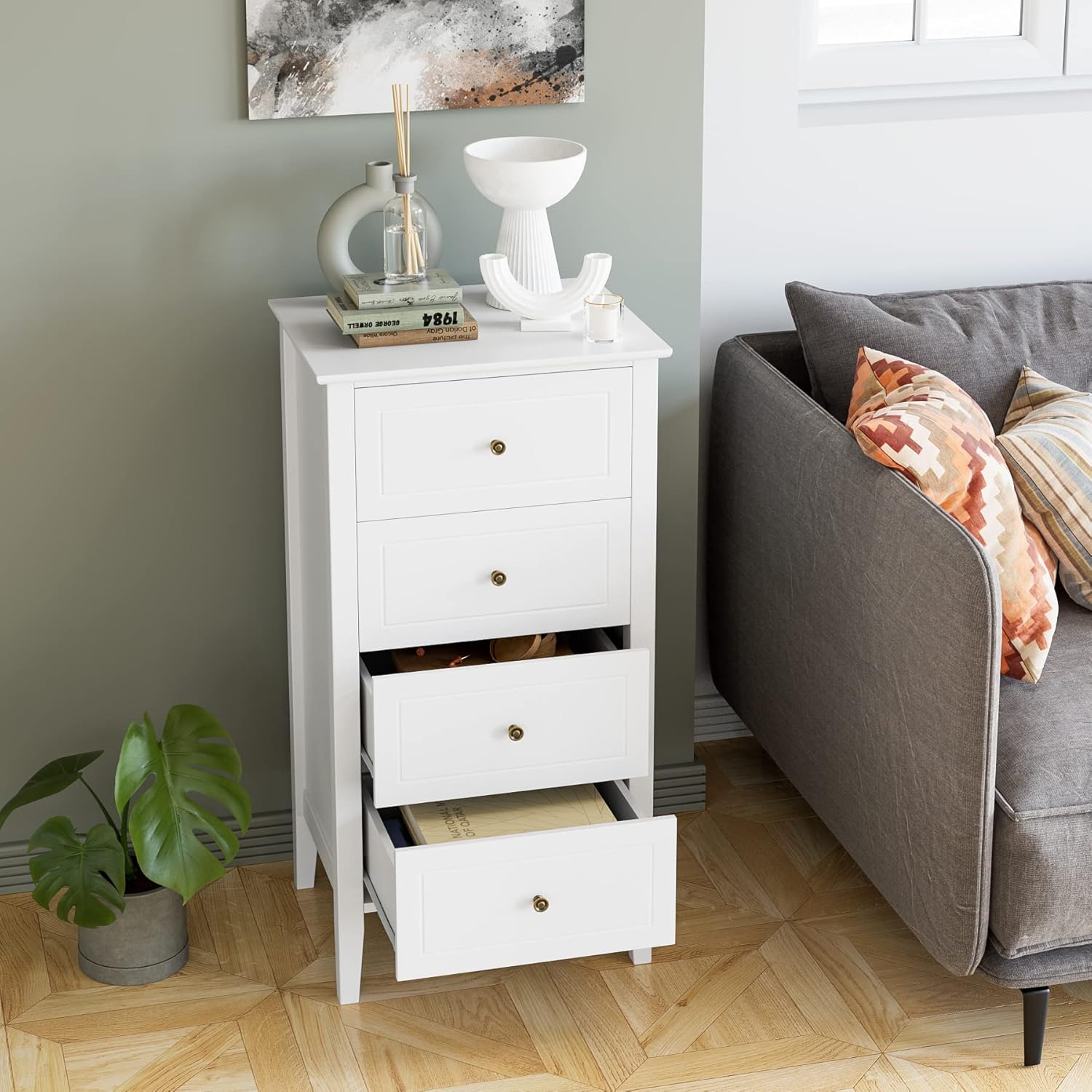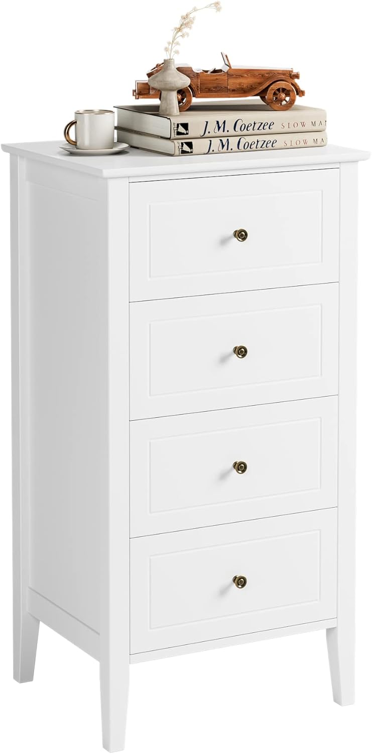 FOREHILL Commode Chambre Commode 4 Tiroirs Petite Commodes Blanche Chiffonnier Meuble de Rangement pour Salon Chambre 50x40x95cm