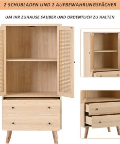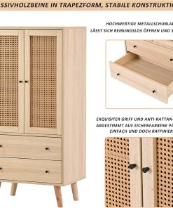 - Design pratique et élégant : plus d’espace de rangement : l’aparador est composé de 2 portes en bois et 2 tiroirs. La mémoire est donc garantie. Panneau de porte en tissu de rotin : il est beau et élégant, empêche la poussière d’entrer et facilite le nettoyage quotidien. Sans charnière : les panneaux de porte sont conçus pour être très faciles à monter et réduire le bruit en même temps.