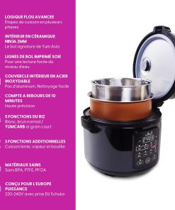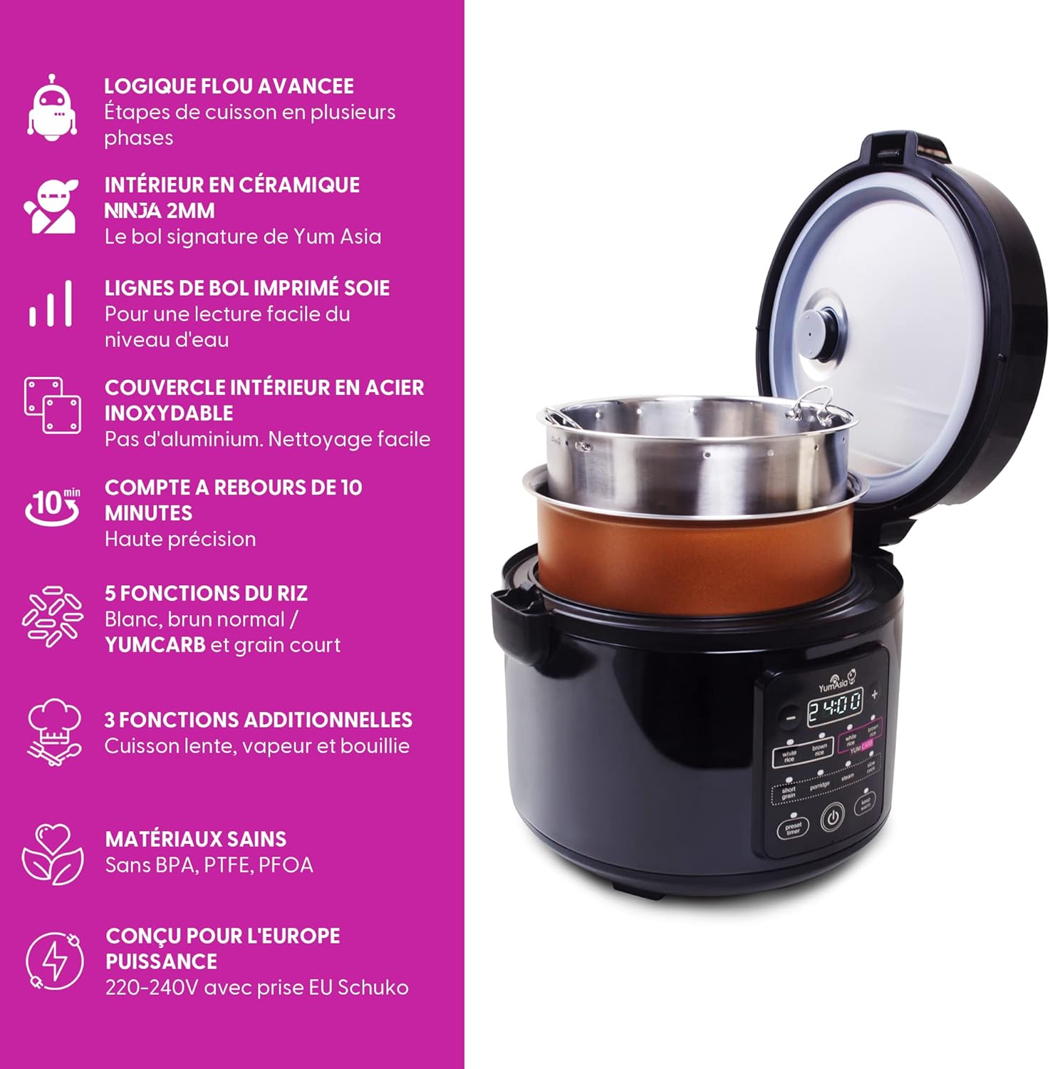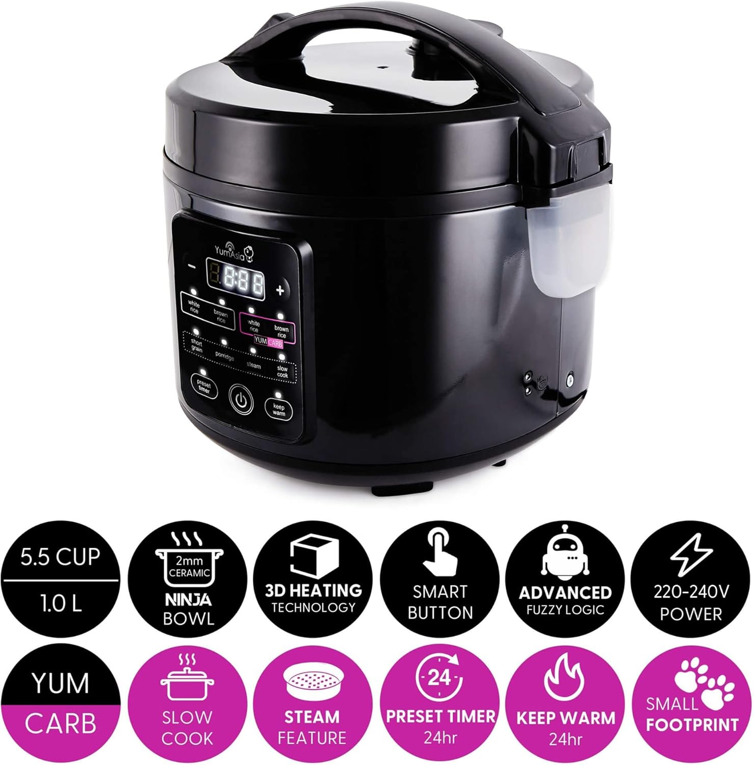 Yum Asia Kumo YumCarb Cuiseur à riz avec bol en céramique et logique floue avancée, (5,5 tasses, 1 litre), 5 fonctions de cuisson du riz, 3 fonctions multicuiseurs, 220-240V