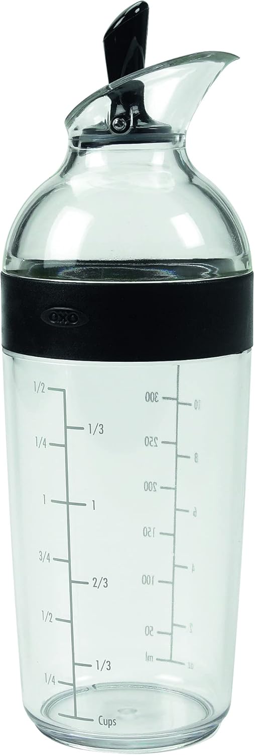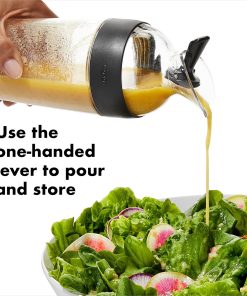 OXO Good Grips 1351580V2MLNYK Essoreuse à salade transparent/blanc, Plastique, Grand L’essoreuse à salade que nous avons présentée en 1998 a transformé l’ustensile en un élément de cuisine quotidien essentiel. Nous avons revisité l’essoreuse pour effectuer quelques améliorations tout en conservant les caractéristiques principales et l’inspiration originale : une toupie pour enfants. Avec un design moderne qui complète les cuisines contemporaines et un frein amélioré qui l’arrête net à chaque fois, nous pensons que vous allez adorer notre nouvelle version du design classique. Séchez les salades vertes d’une simple pression sur la poignée douce antidérapante. La base antidérapante maintient solidement le bol sur le plan de travail, et le bouton d’arrêt intégré arrête l’essoreuse pour la vider. Le panier fait aussi office de passoire, et le couvercle se défait pour un nettoyage facile. Oxo Good Grips Shaker à Vinaigrette Préparer rapidement une vinaigrette est simple avec le shaker à vinaigrette OXO Good Grips. Le shaker étanche offre un moyen propre, soigné et pratique de mélanger, servir et conserver les vinaigrettes, les sauces et les marinades. Le haut se dévisse pour révéler une large ouverture idéale pour ajouter une variété d’ingrédients comme l’huile, le vinaigre, la mayonnaise, la moutarde, l’ail, les oignons et les épices. Le Shaker est fabriqué dans un matériau sans bisphénol A, résistant aux chocs et lavable au lave-vaisselle. Une fois les ingrédients ajoutés, vissez le haut et agitez pour mélanger rapidement les ingrédients sans les renverser. Le levier sur le haut bascule vers l’arrière pour servir et vers l’avant pour sceller. Utilisez le shaker pour conserver les restes de vinaigrette et de sauce directement dans le réfrigérateur.