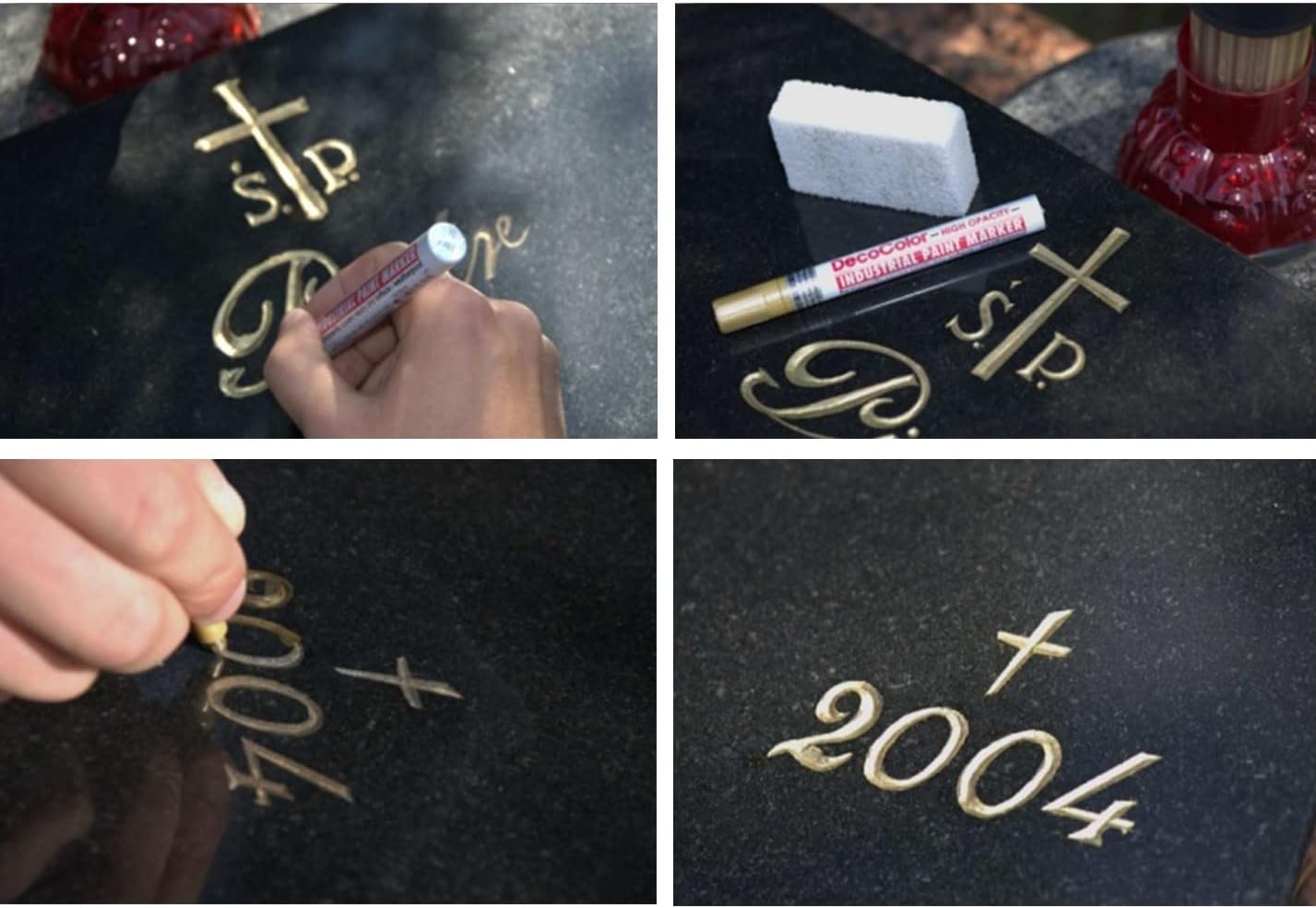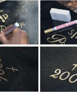 Produit efficace et simple d’utilisation, le marqueur noir couvre bien les gravures et redonne instantanément du contraste aux inscriptions ; le résultat est propre et durable, idéal pour la restauration occasionnelle des pierres tombales.