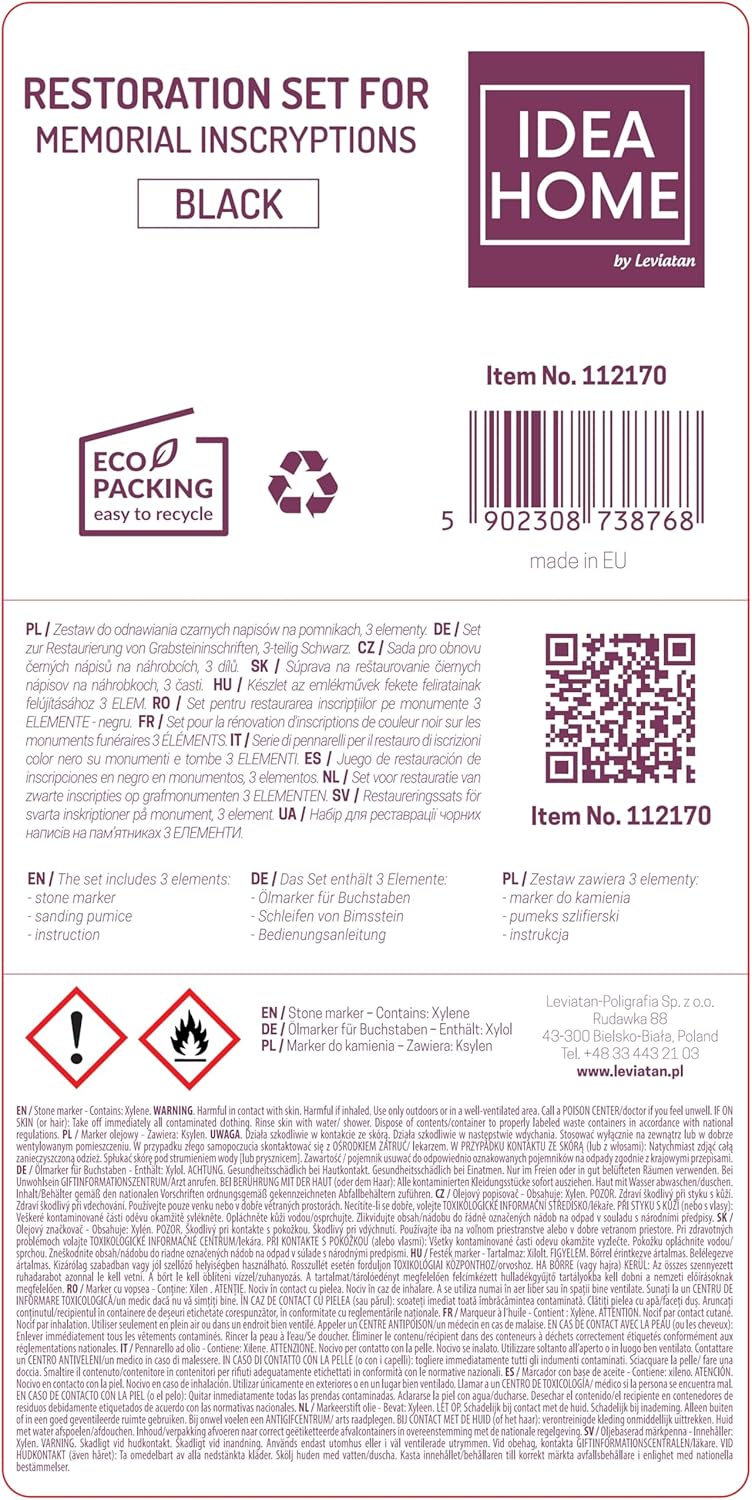 Le set LEVIATAN pour restauration d’inscriptions sur pierres tombales fonctionne bien: le marqueur d’huile noir redonne une bonne lisibilité, l’application est simple et le rendu reste naturel sans surcharger la pierre. Bon rapport qualité-prix pour des retouches ponctuelles.