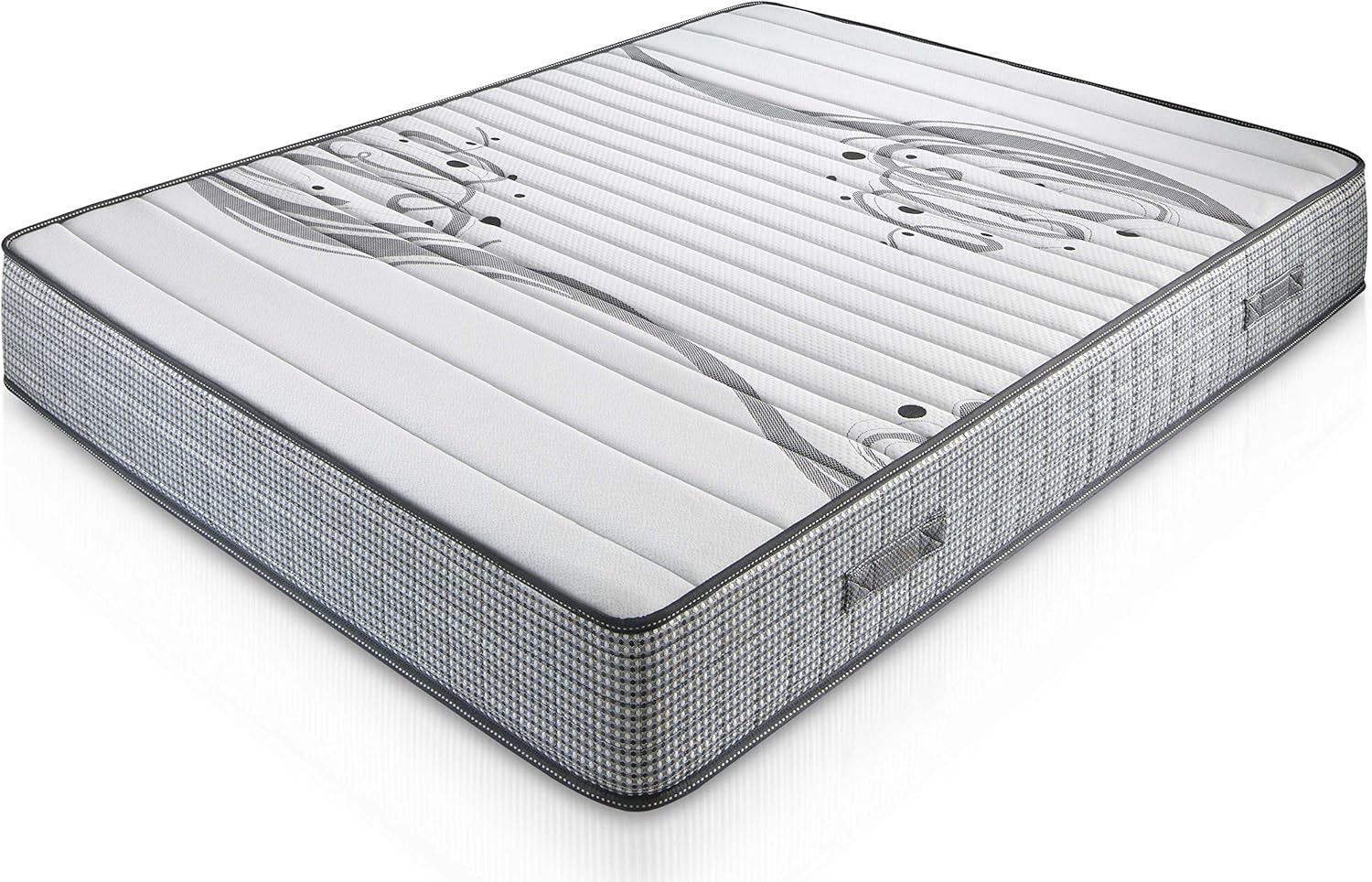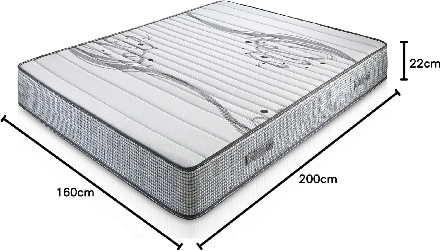 - Plateau inférieur: coutil en tissu 3D pour la bonne transpiration du noyau matelassé avec 15 mm de mousse profilée