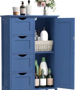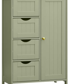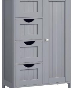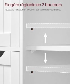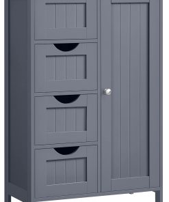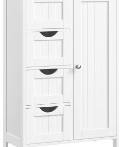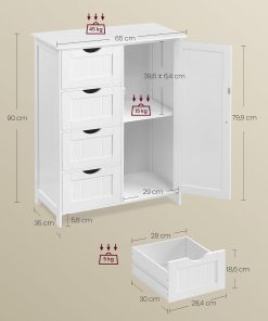 VASAGLE Meuble Salle de Bain Rangement, Armoire Gain de Place, Commode, avec 4 Tiroirs, Placard avec Porte, Étagère Réglable, 35 x 65 x 90 cm, Blanc Nuage LHC042W01