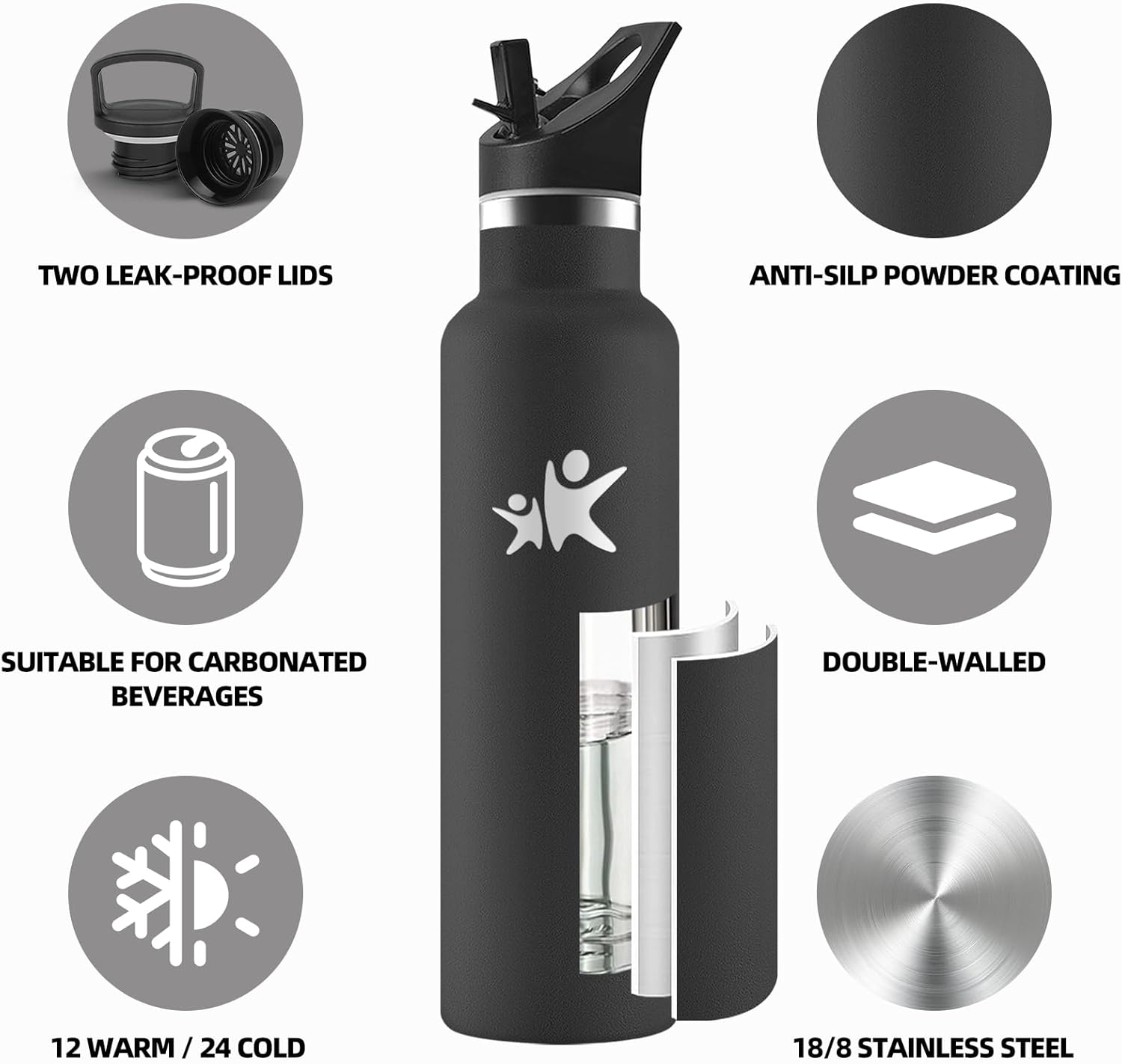 - 【Acier Inoxydable Isolé Sous Vide] Grâce à sa double paroi isolante, cette bouteille isotherme conserve vos boissons préférées chaudes ou froides pendant des heures. L'acier inoxydable à double paroi isotherme maintient les boissons chaudes jusqu'à 12 heures et froides jusqu'à 24 heures sans condensation. Que vous savouriez un thé ou un café chaud le matin ou une boisson fraîche par une chaude journée, cette gourde inox maintiendra toujours la température idéale, même en déplacement !