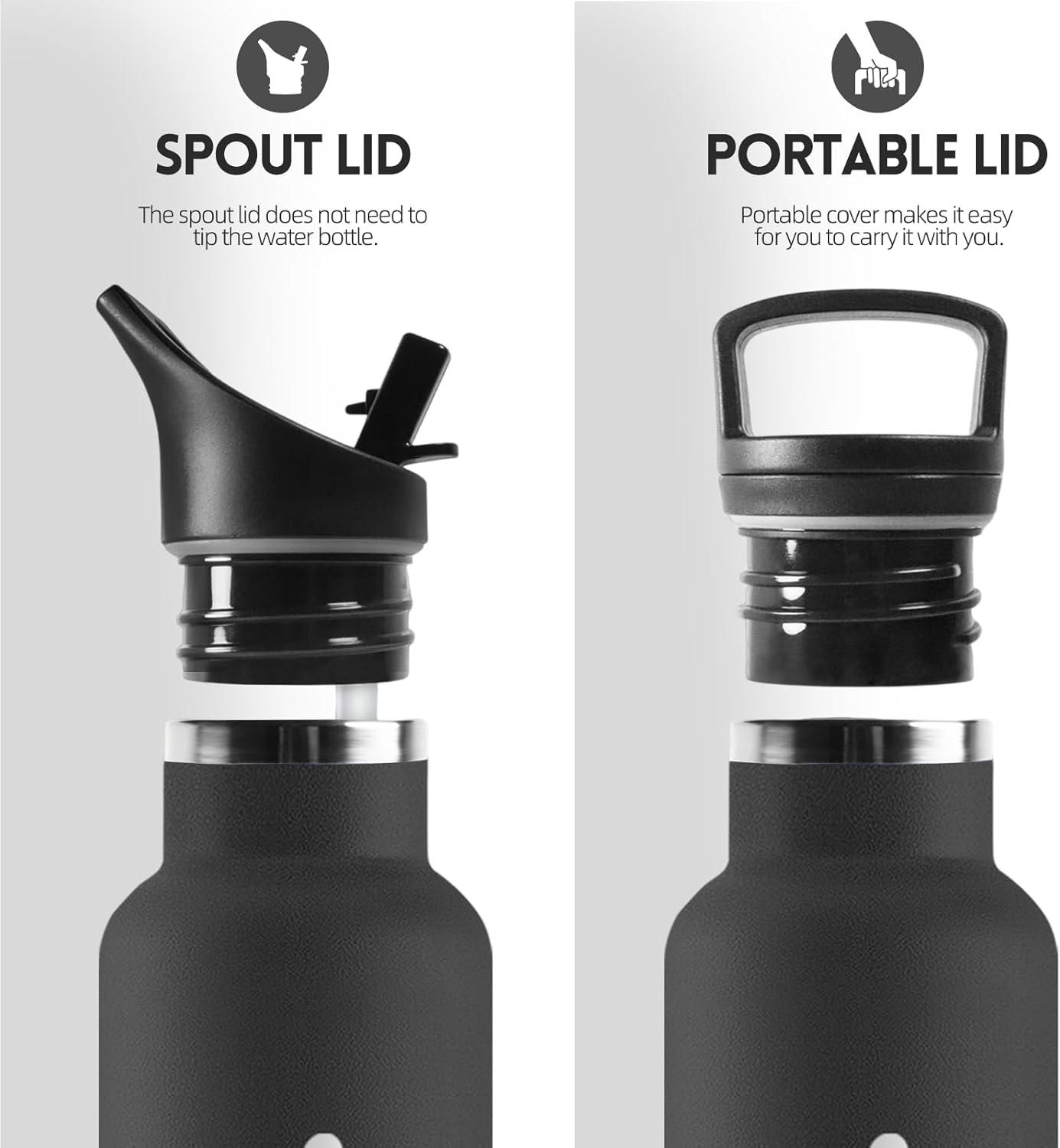 - 【2 Options de Couvercles Remplaçables】 (1) Couvercle à paille : permet de boire facilement de l'eau ou des boissons sans retirer le couvercle. Peut servir à mettre des glaçons en été, idéal pour le sport et les activités de plein air. (2) Couvercle à poignée : ce couvercle est doté d'un anneau de transport et d'un filtre amovible. Peut contenir des tisanes, des fruits, des glaçons ou toute autre boisson.