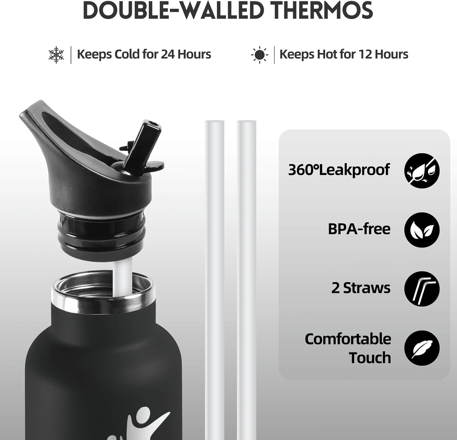 - 【Anti Fuite】Cette gourde paille est facile à nettoyer. Son bouchon fileté robuste assure une étanchéité parfaite, tandis que son anneau en silicone de haute qualité prévient les fuites, même en cas de retournement ou de secousse. De plus, son corps robuste assure une tranquillité d'esprit même en cas de chute. Elle est idéale comme thermos pour boissons chaudes, bouteille de sport ou accessoire de bureau.