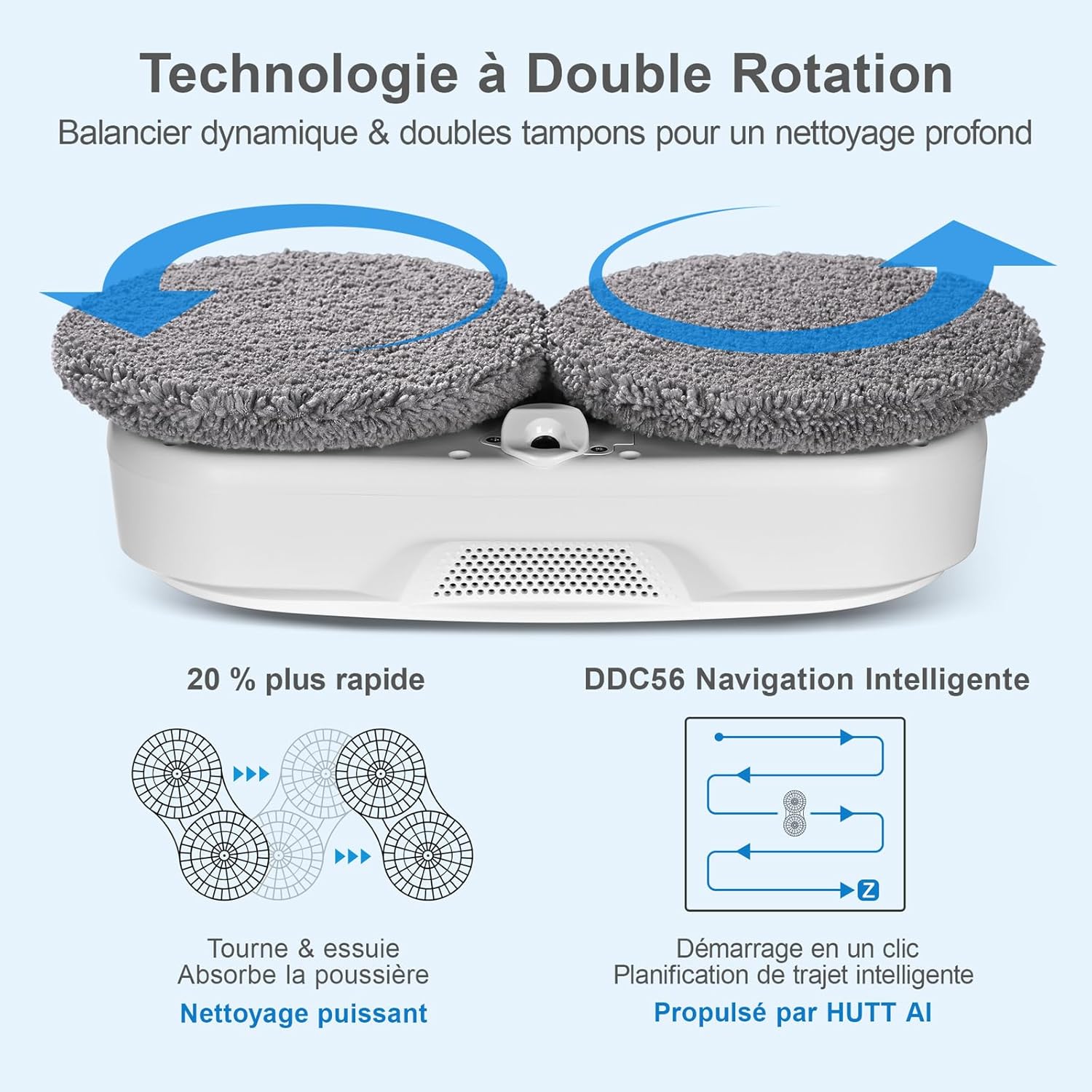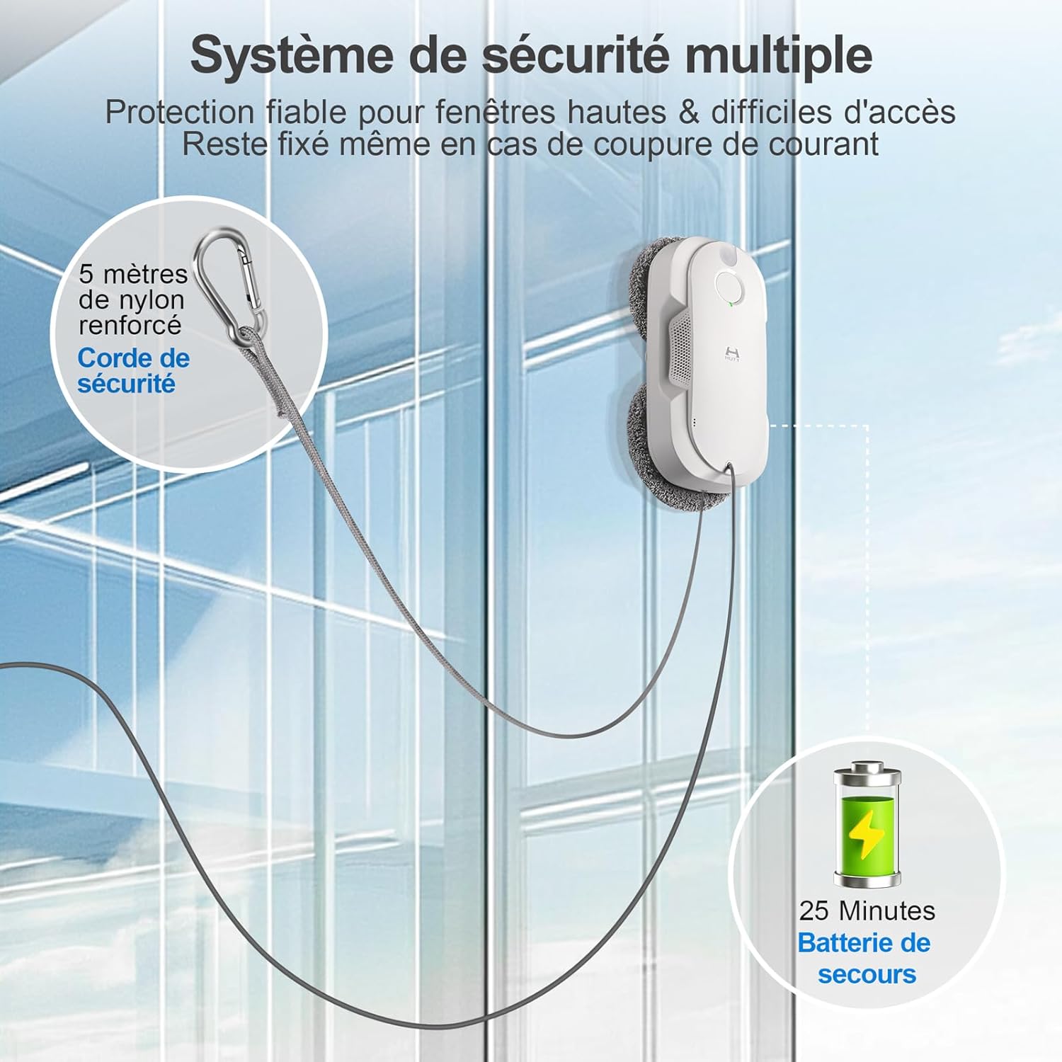Le HUTT DDC56 a vraiment simplifié le nettoyage des vitres : il les nettoie rapidement et sans traces, la double pulvérisation est efficace et la navigation intelligente évite les accros; la télécommande est pratique et le système de protection triple rassure en hauteur. Très satisfait de la performance et du gain de temps, je le recommande.