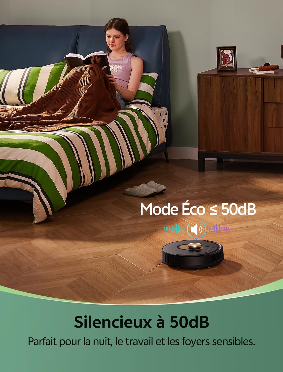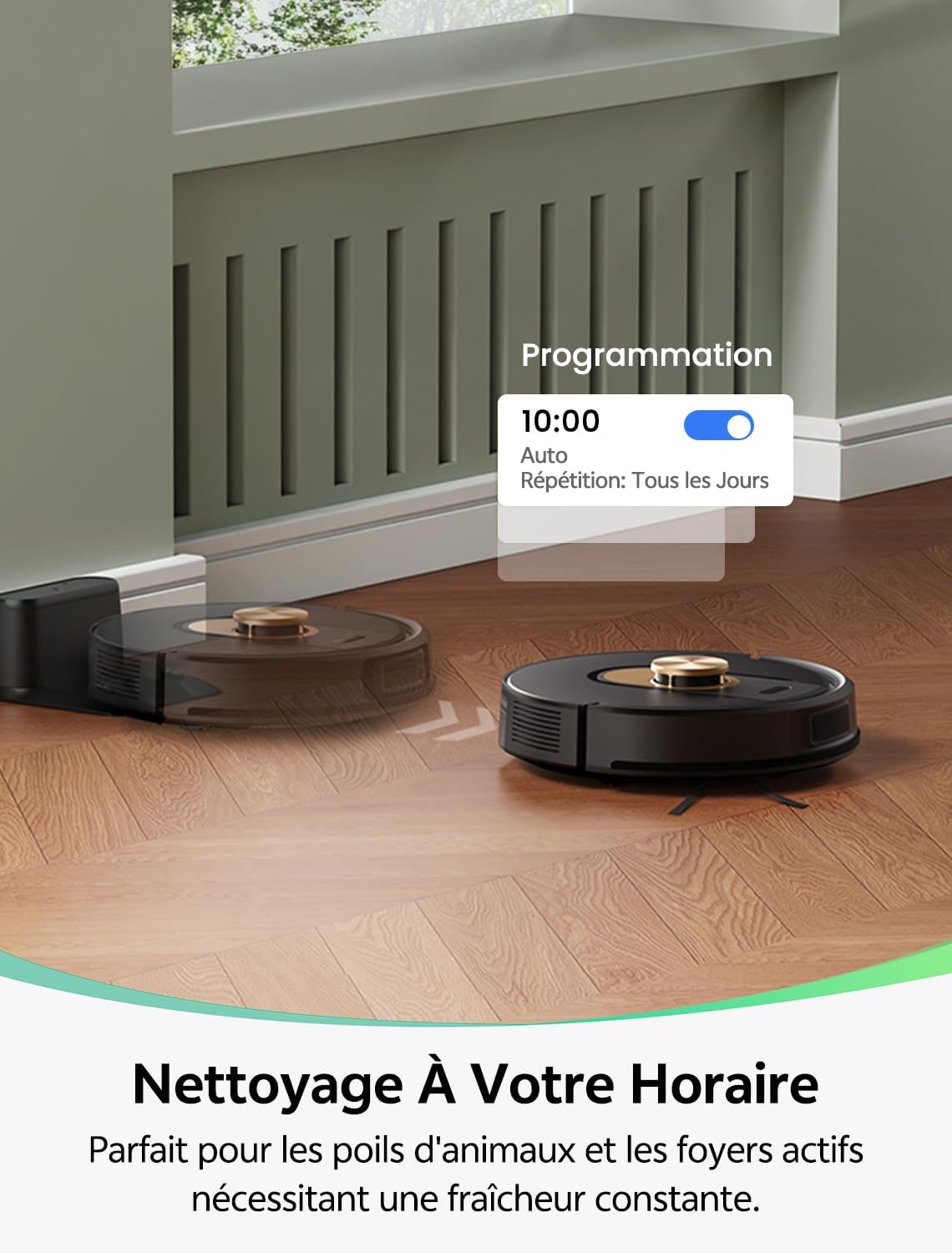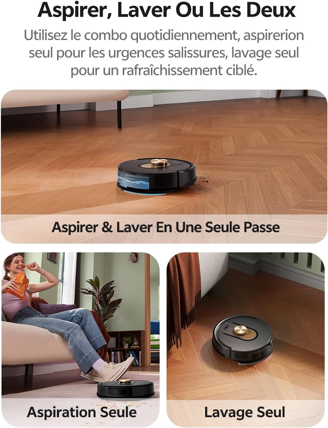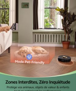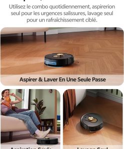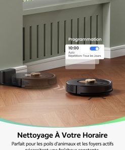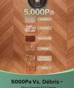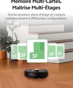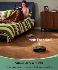 - 【Design compact et agile】Avec son design ultra-plat de seulement 9,8 cm de hauteur, ce aspirateur robot laveur se faufile sans effort dans les espaces les plus exigus, même sous les meubles bas ou entre les pieds de lit. Son agility lui permet de contourner intelligemment les obstacles et de nettoyer en profondeur les recoins inaccessibles aux autres appareils.