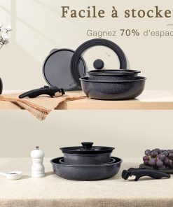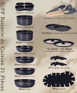 Set de casseroles GiPP avec poignée amovible, set de 21 poêles avec revêtement antiadhésif en céramique, casseroles à induction, résistantes au four, adaptées à tous les types de cuisinières