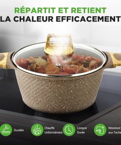 Très satisfaite de cet ensemble 22 pièces NutriChef : le revêtement antiadhésif est efficace, la finition marbre marron est élégante et s’accorde bien à la cuisine, et la compatibilité induction est un vrai plus. Les casseroles et poêles chauffent de façon homogène, les ustensiles résistent bien à la chaleur et tout se nettoie facilement. Bon rapport qualité-prix pour une collection complète et pratique au quotidien.