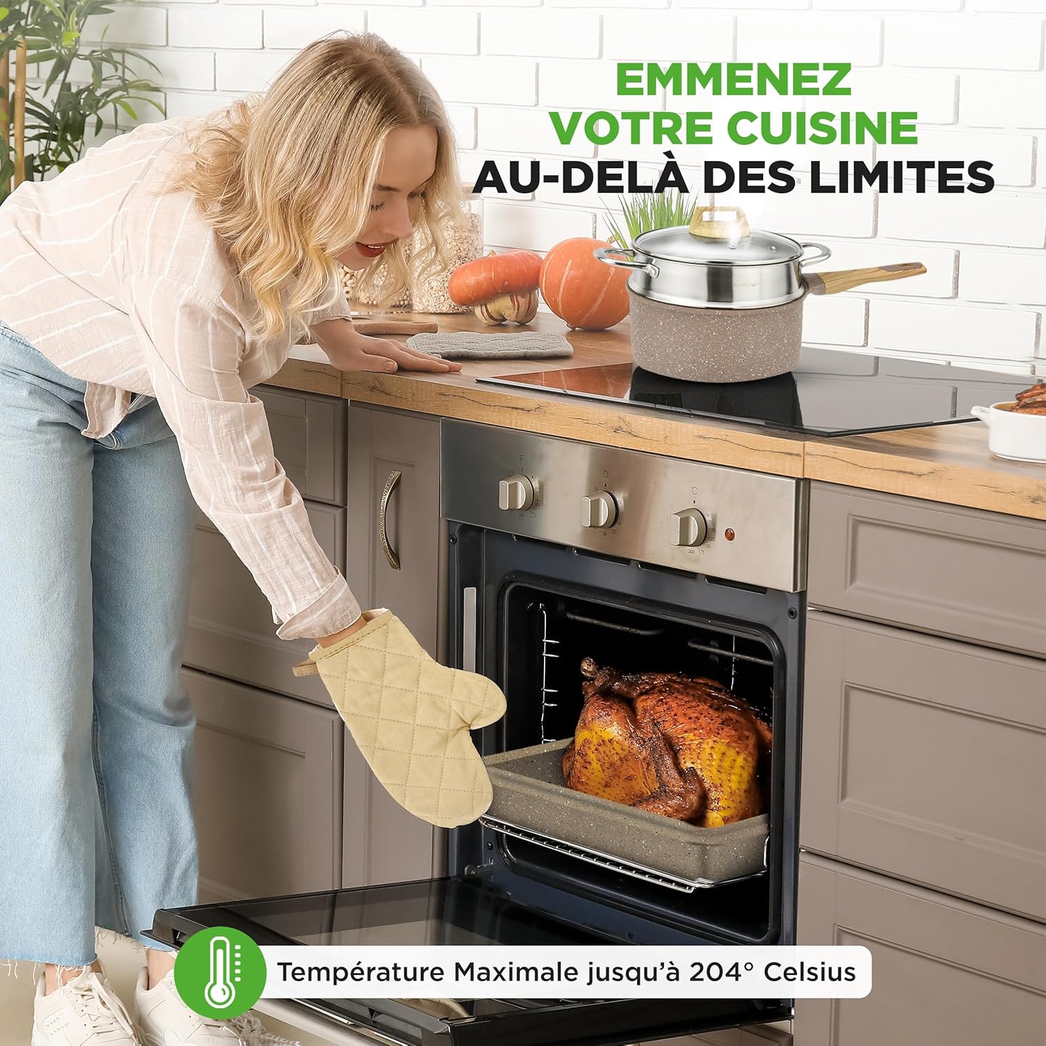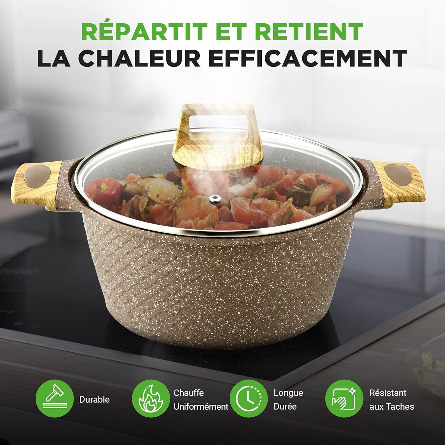 - DESIGN FACILE À UTILISER : Cuisinez avec notre batterie de cuisine, compatible avec cuisinières à gaz, électriques, en céramique et à induction. Facile à utiliser et conçue pour un confort optimal en cuisine.