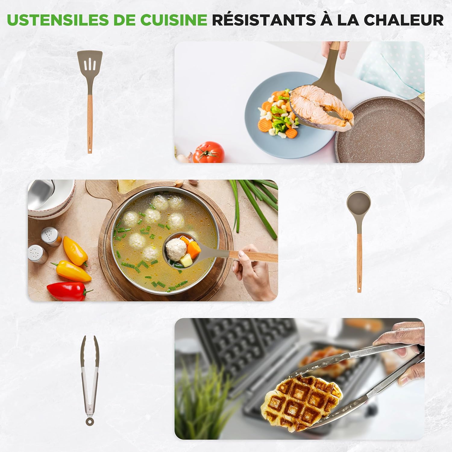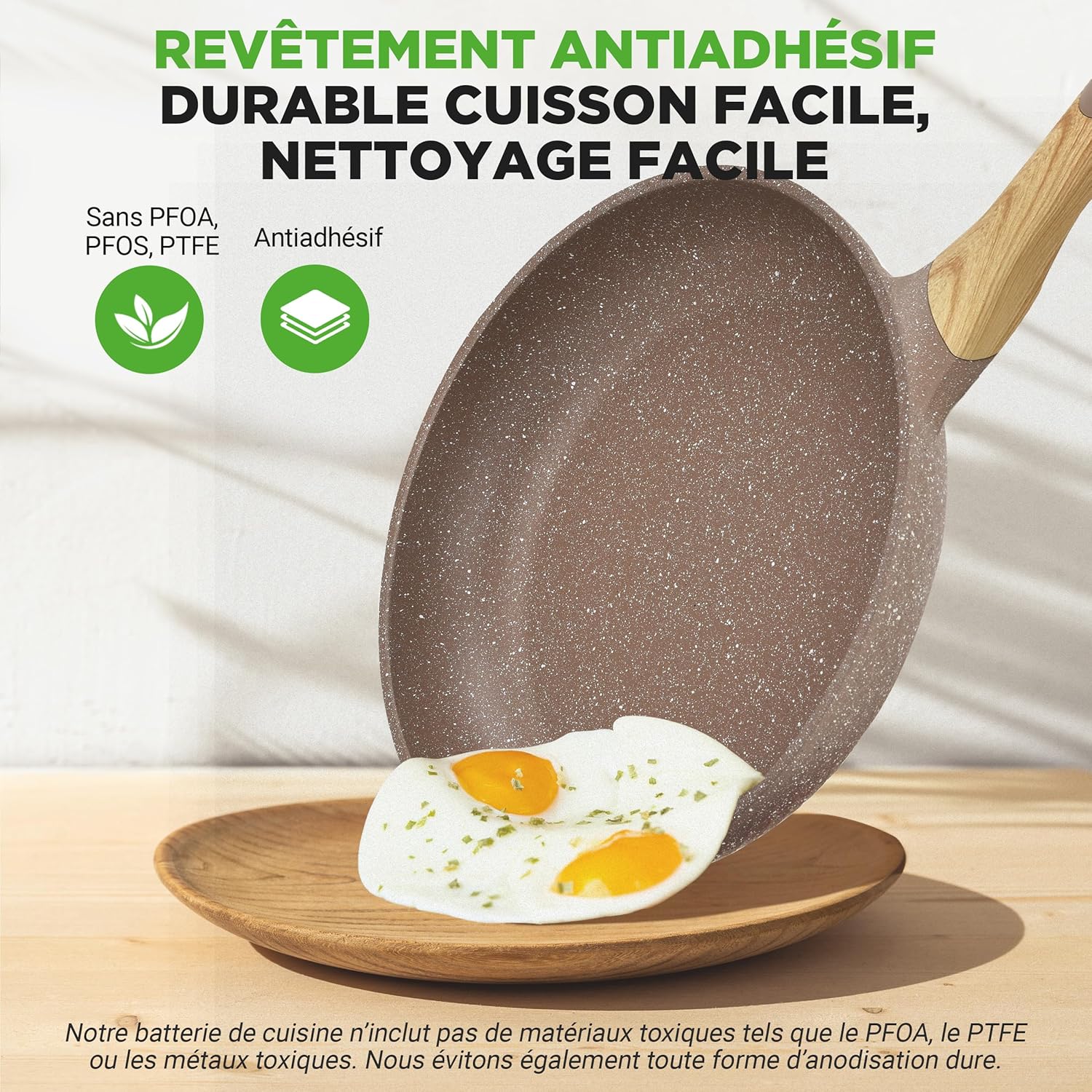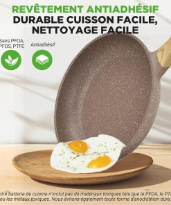 - POIGNÉES FROIDES AU TOUCHER – Améliorez le confort de votre cuisine avec des poignées ergonomiques froides au toucher, offrant une prise sécurisée et réduisant le risque de brûlures. Vous aurez plus de contrôle tout en cuisinant avec vos poêles antiadhésives.