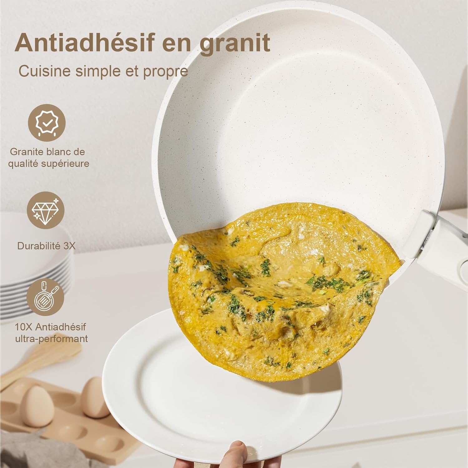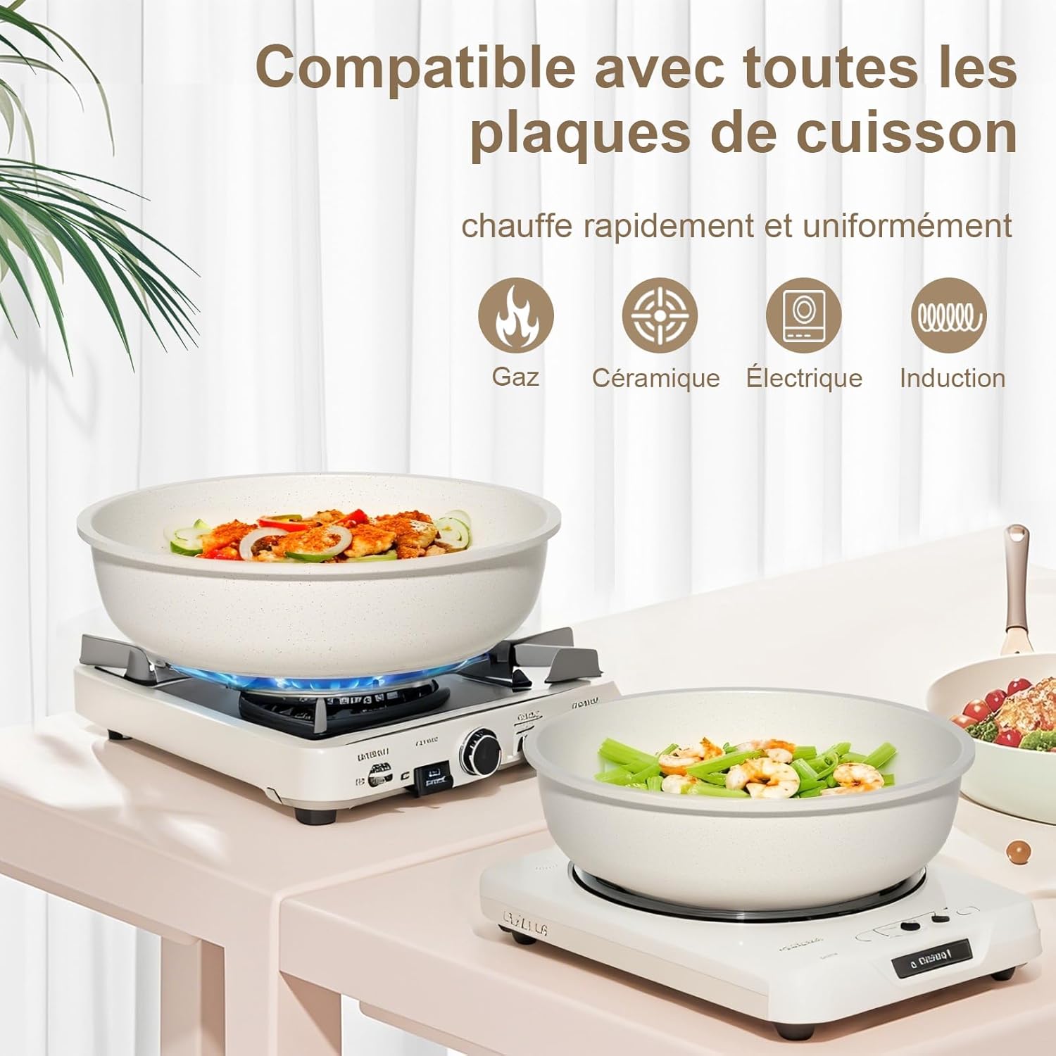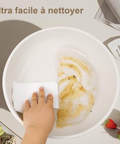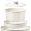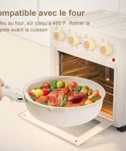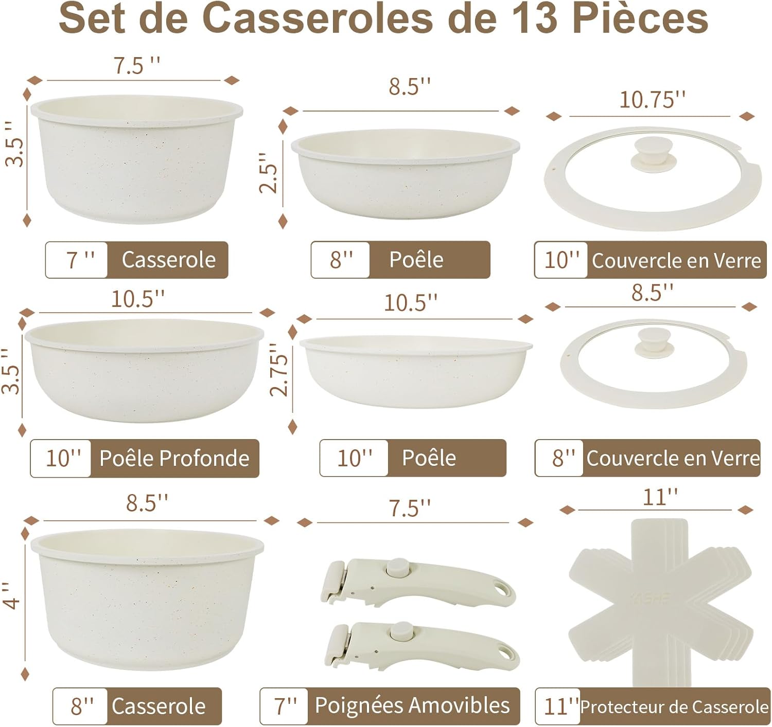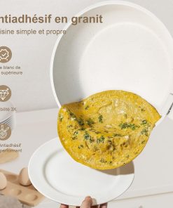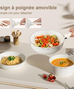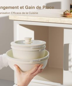 YASHE Batterie de Cuisine 13Pcs, Batterie Cuisine avec Couvercle Empilable, Lot Casserole et Poele Induction, Poignée Amovible, Passe au Four, Revêtement Antiadhésif, Crème, Blanc