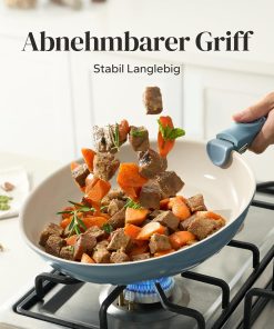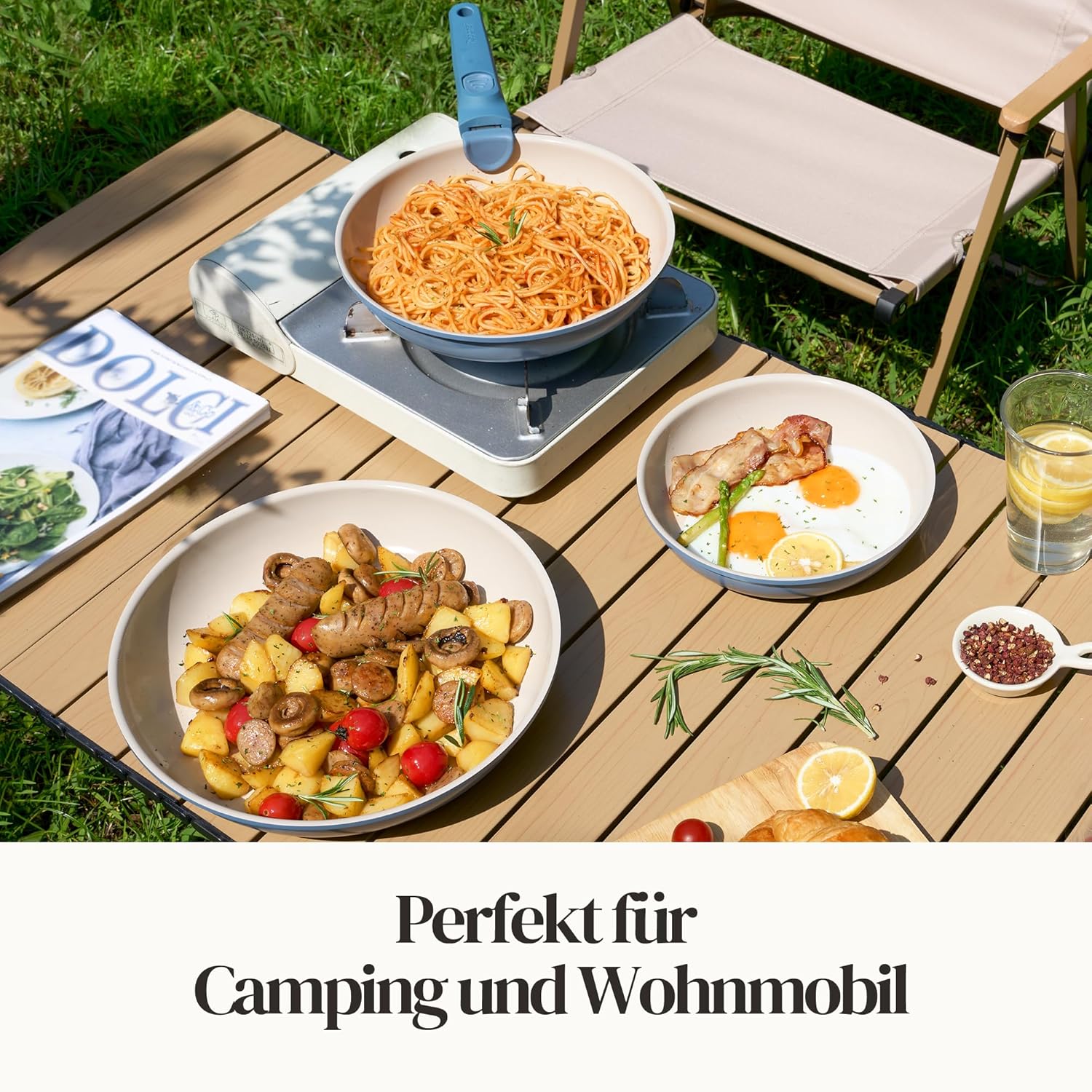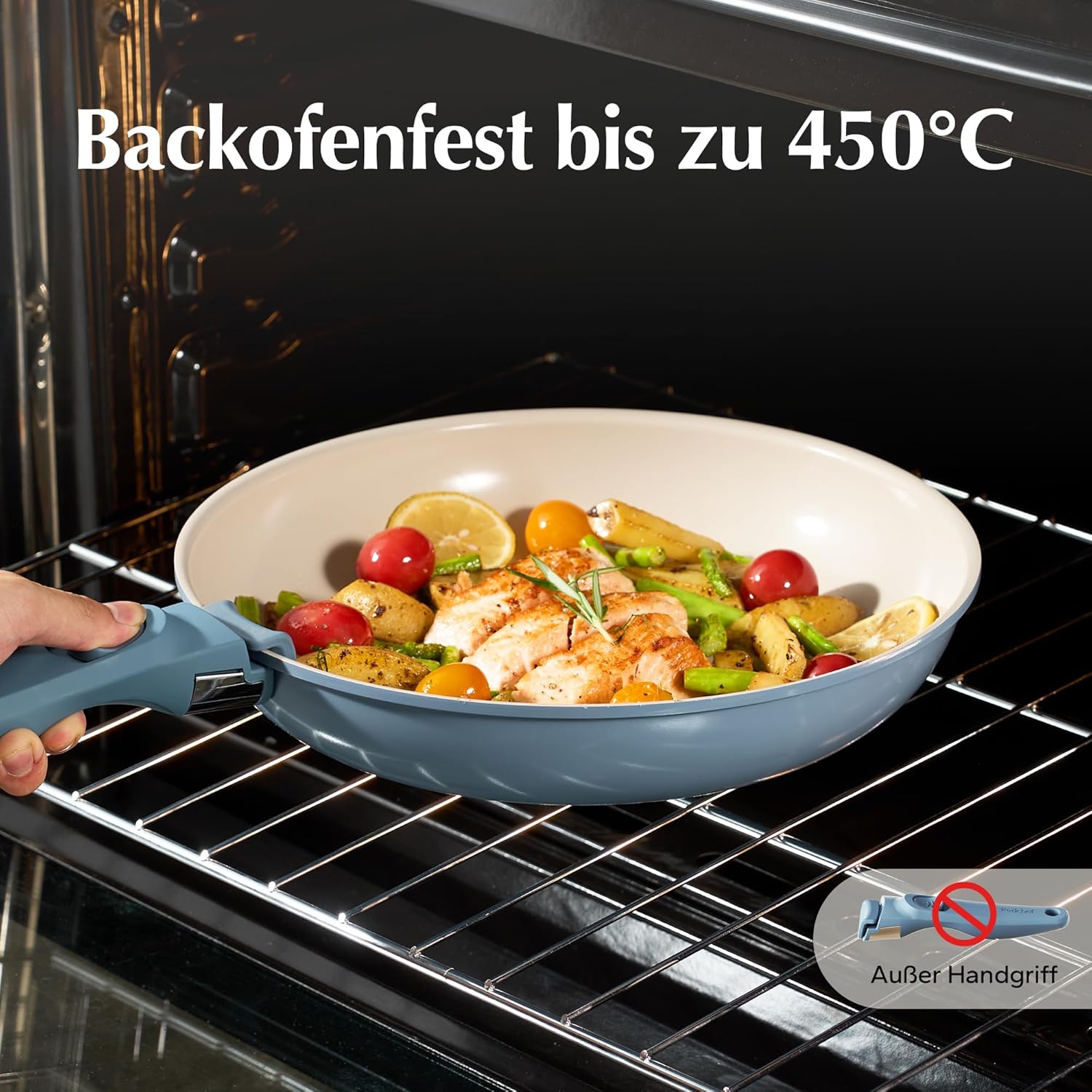 Redchef Lot de poêles et poêles en céramique avec poignée amovible et anti-adhésives 20/24/28 cm pour le camping, sans PTFE, sans PFOA, peu encombrantes, passent au lave-vaisselle (bleu)