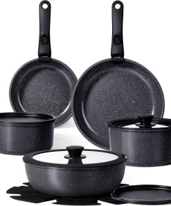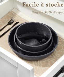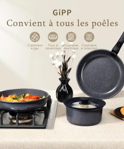 GiPP Set de Poêles et Casseroles Avec Revêtement Céramique Antiadhésif – 15Plus Pièces Sets de Casseroles Avec Poignées Détachables, Sans Toxiques, Compatible Induction, Four et Lave-vaisselle