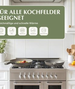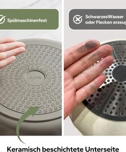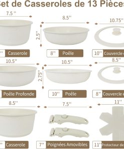 Ensemble pratique et bien conçu, les 11 casseroles en céramique chauffent de façon régulière et les couvercles en verre s’ajustent correctement; le fait qu’elles soient sans PTFE ni PFAS et compatibles avec tous les types de feux est rassurant, et elles se nettoient facilement au lave-vaisselle pour un entretien simple au quotidien.