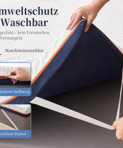 - 3️⃣ Housse Amovible, Lavable & Hypoallergénique Équipé d’une housse douce au toucher, anti-acariens et hypoallergénique. Fermeture éclair intégrale pour un retrait facile, lavage en machine ou à la main. Les 4 bandes élastiques renforcées assurent une fixation stable sur votre matelas sans glissement