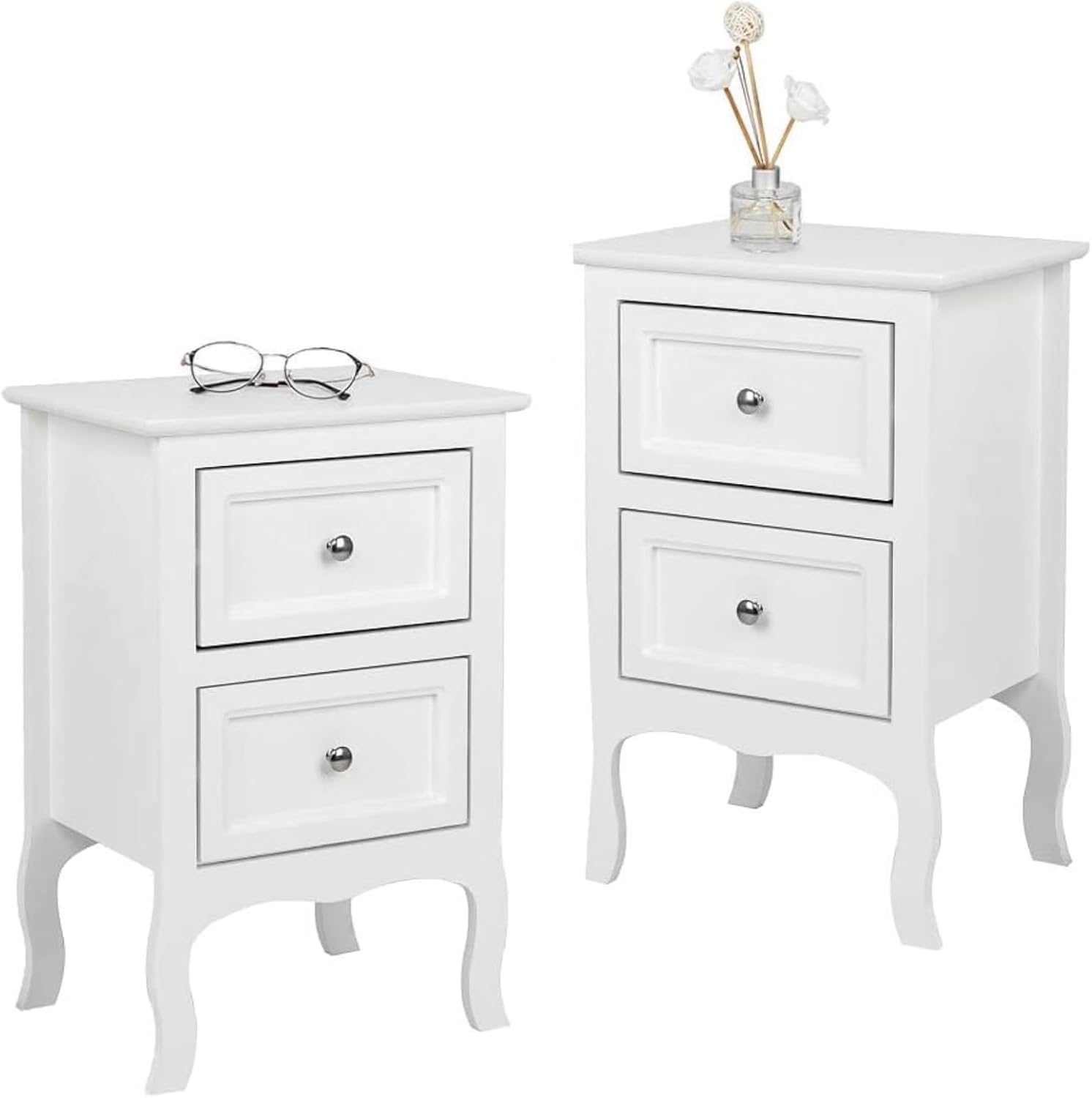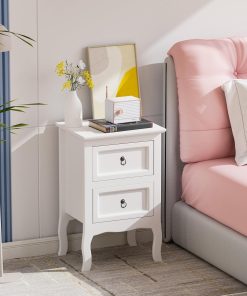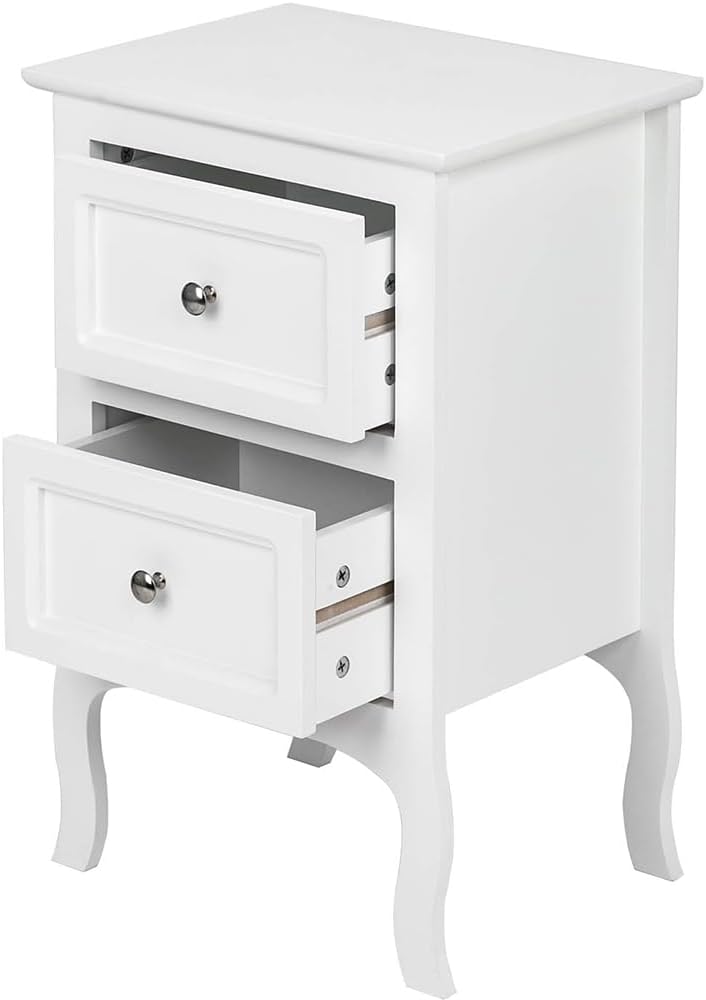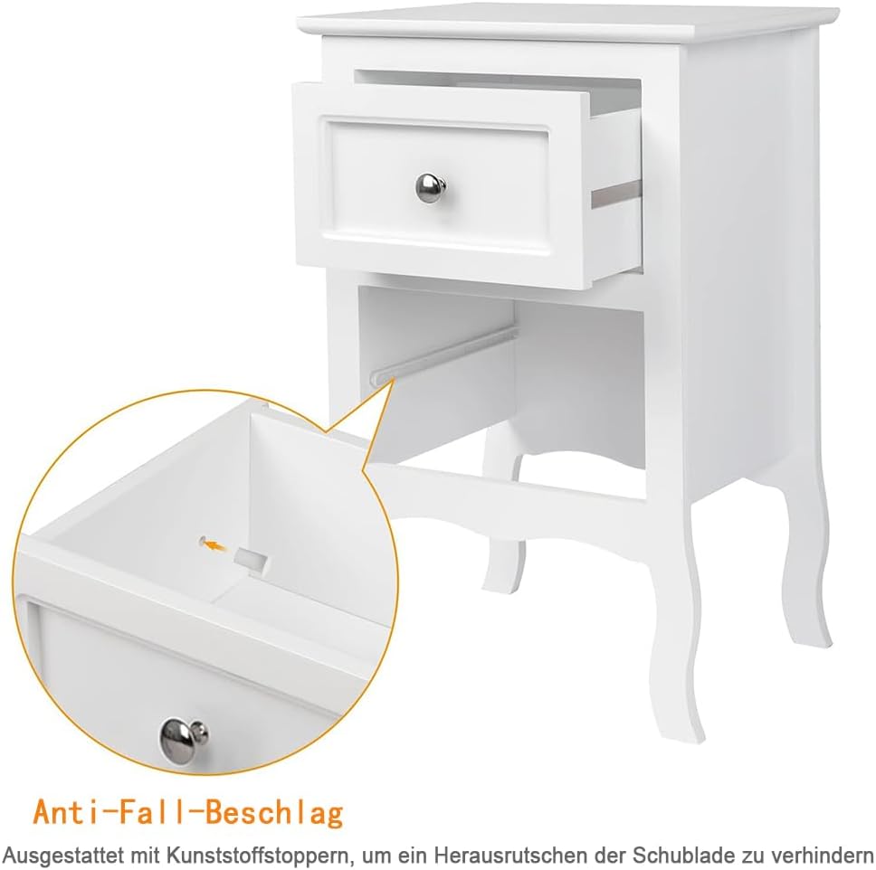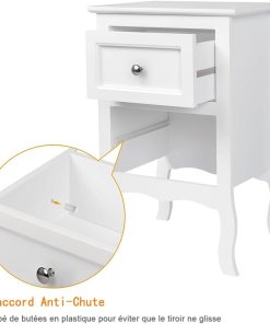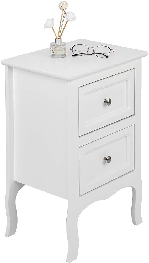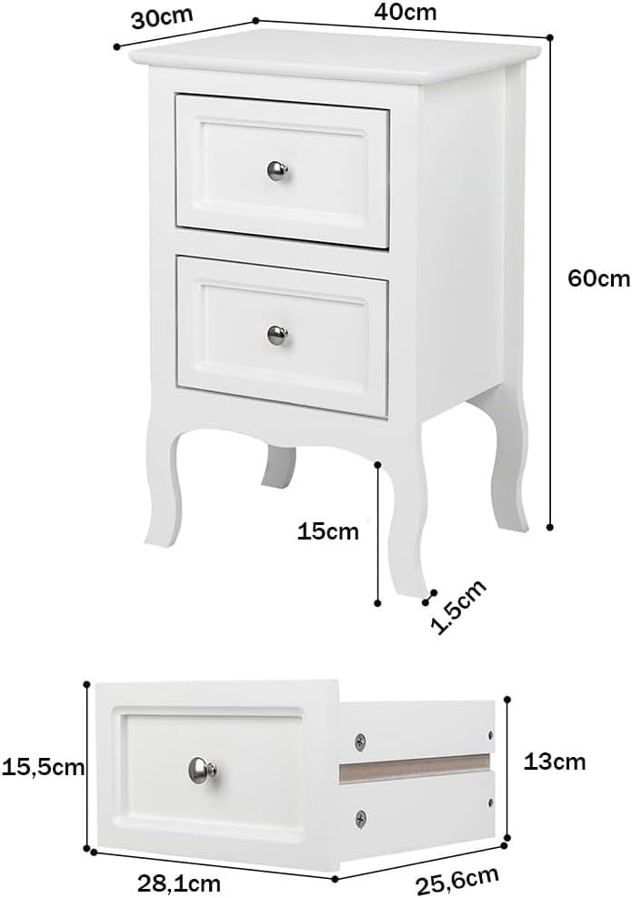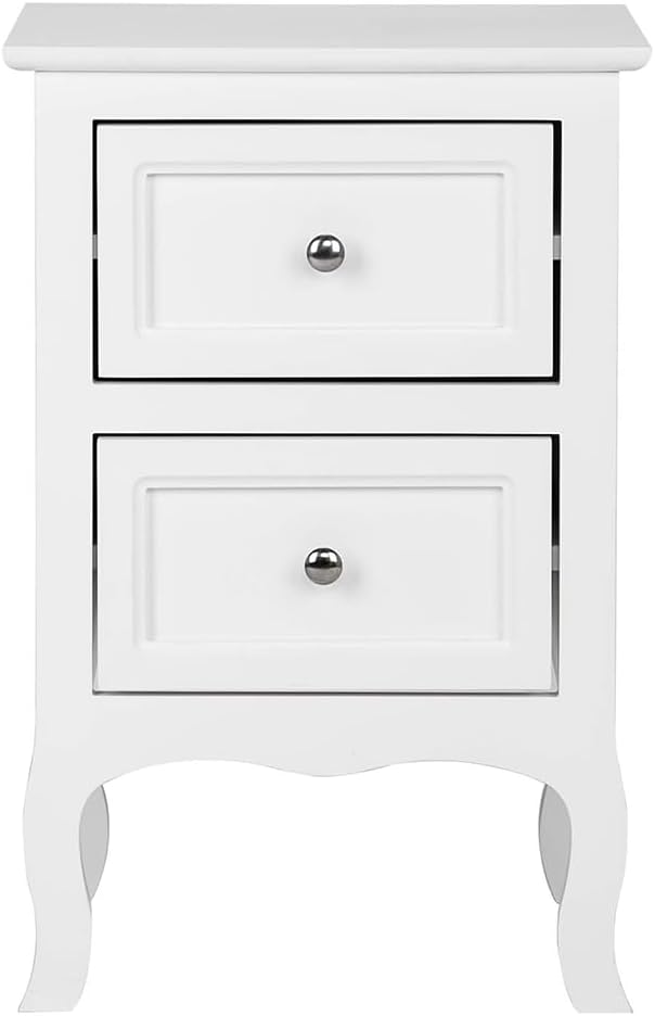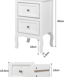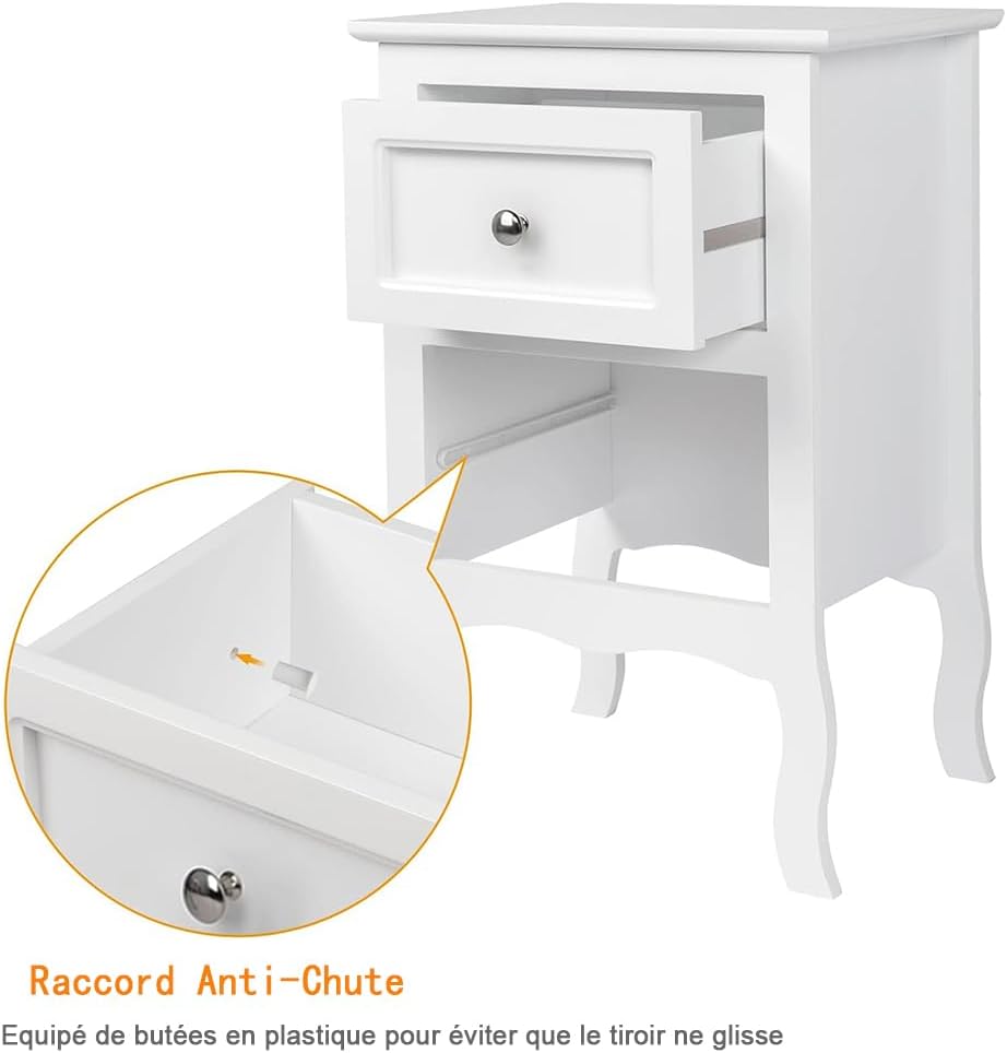 Alightup Table de Chevet Lot de 2 Blanche Tables de Nuit Scandinave Bois avec 2 Tiroirs Meuble de Rangement Commode Chambre Chevet de Lit pour Adulte sur Salon Chambre Bureau