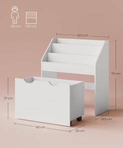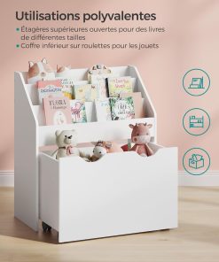 SONGMICS Étagère pour Jouets, 3 Compartiments Bibliothèque pour Enfants, Boîte à Jouets Mobile, avec roulettes, Multi-Usage, pour Chambre d’enfant et Salle de Jeux, Blanc Nuage GKR041W10