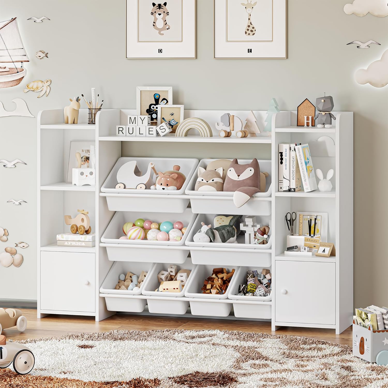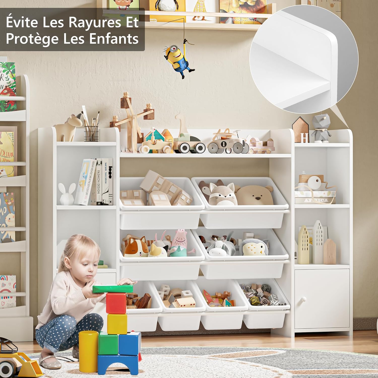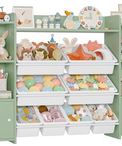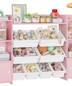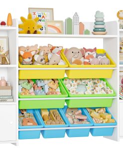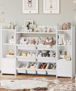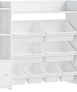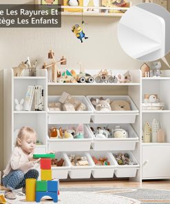 FOREHILL Meuble de Rangement Jouets Enfant Bibliothèque Enfant avec 8 Boîtes Amovibles 9 Étagères Organisateur de Jouets pour Chambre d’Enfant Salle de Jeu Blanc