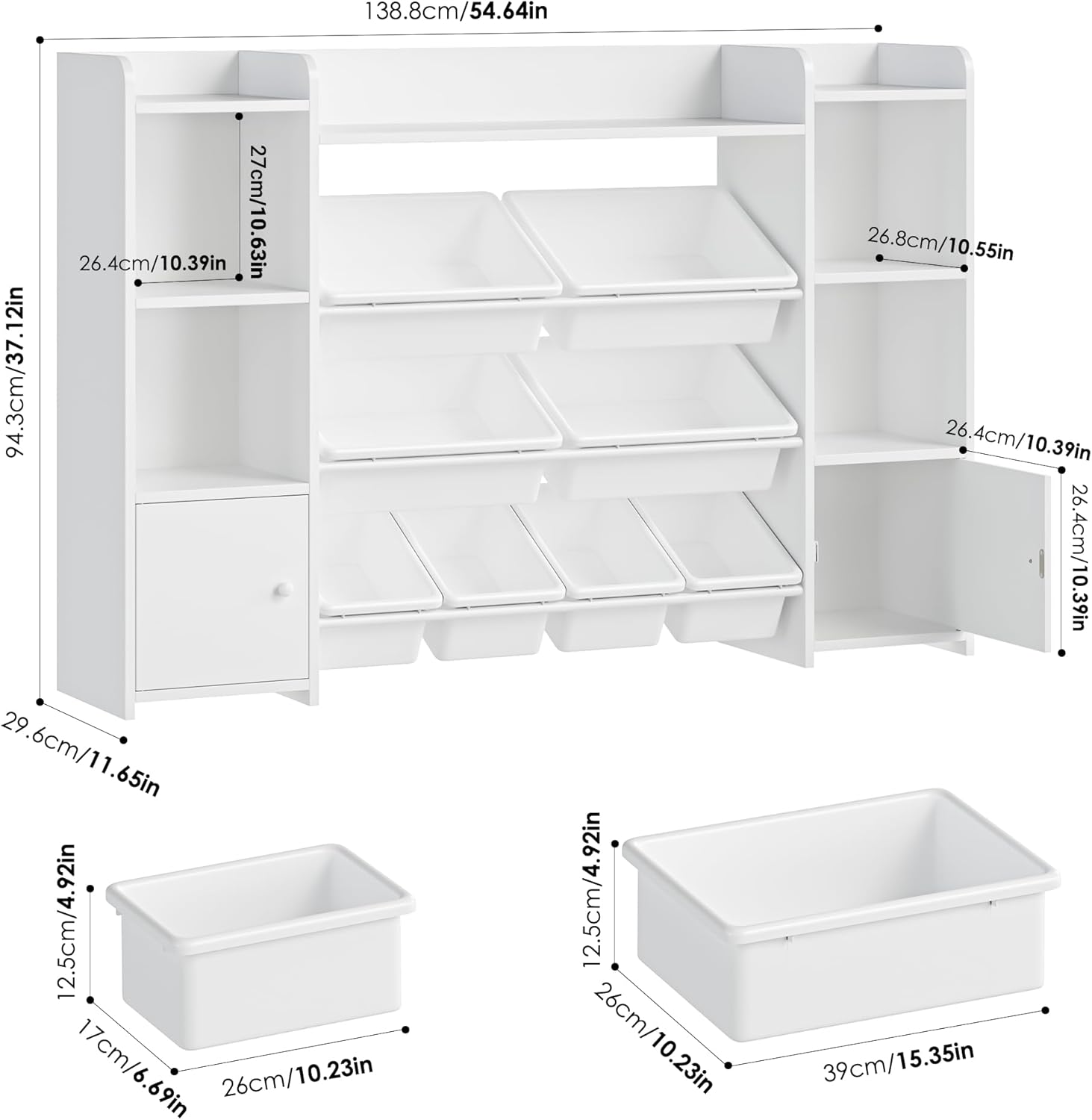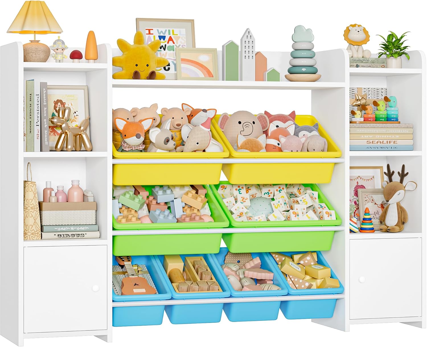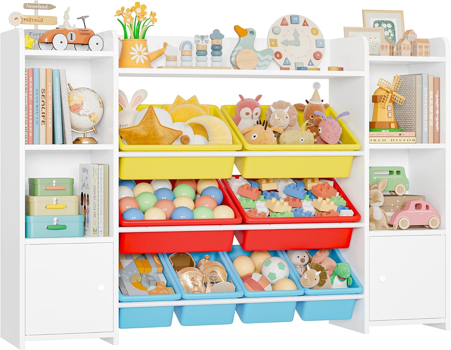 FOREHILL Meuble de Rangement Jouets Enfant Bibliothèque Enfant avec 8 Boîtes Amovibles 9 Étagères Organisateur de Jouets pour Chambre d’Enfant Salle de Jeu Blanc