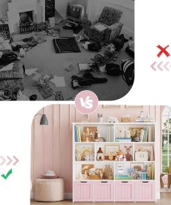 - Espace Spacieux et Organisé: Cette bibliotheque enfant mesure 125,5x33x118cm. 7 compartiments ouverts et 4 tiroirs à roulettes du meuble rangement enfant offrent un espace suffisant pour les livres, les jouets, les poupées, les vêtements et autres objets du quotidien, permettant aux enfants de trouver facilement ce dont ils ont besoin, de cultiver de la bonne habitude de rangement et de rendre la chambre des enfants rangée et ordonnée en un instant