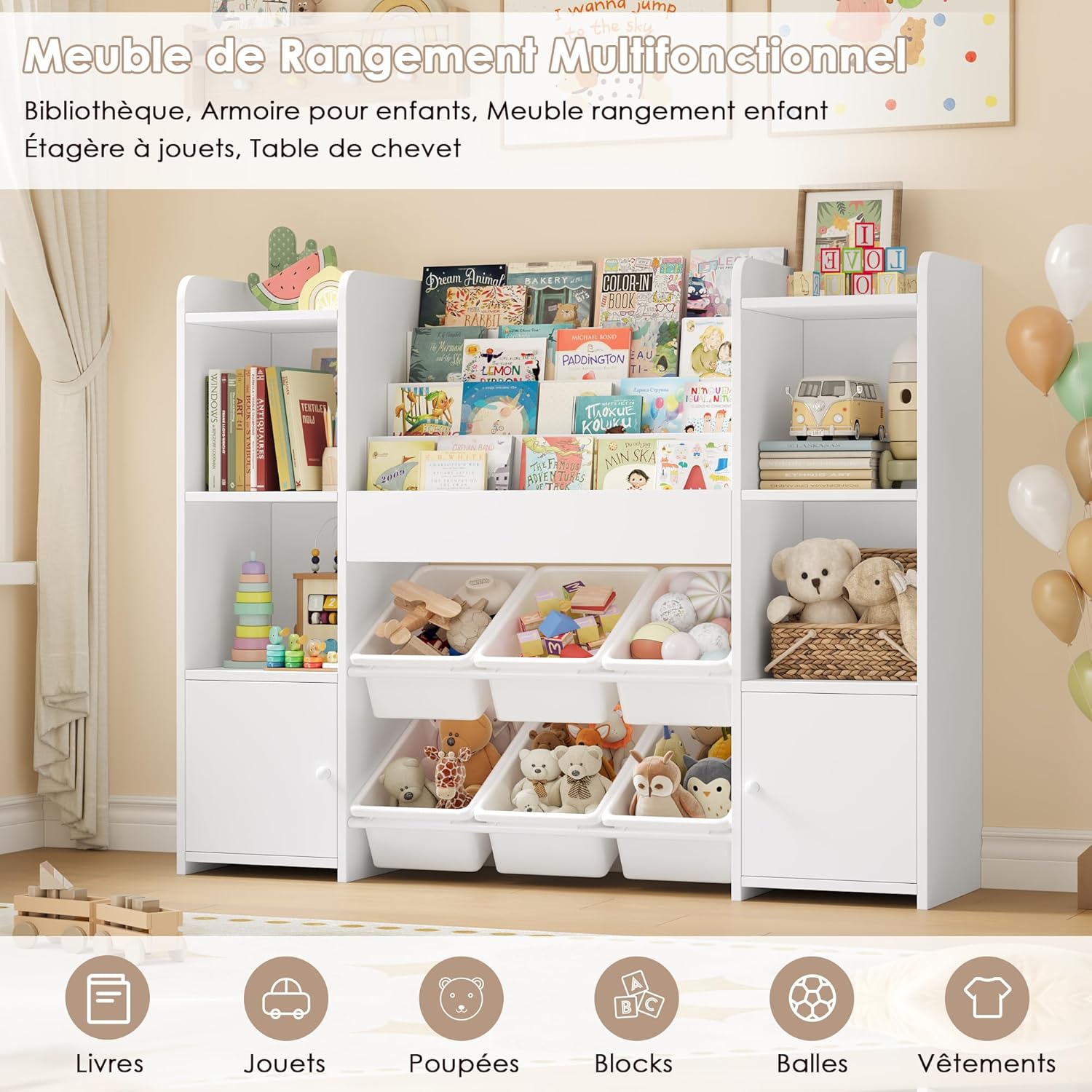 - [Meuble de rangement chambre multifonctionel] : Bibliotheque enfant peut être placée dans la chambre d’enfant, la salle de jeux pour enfants, la crèche et l’aire de jeux pour enfants. Peut être utilisé comme meuble rangement jouet, bibliotheque enfant, étagère pour enfants, rangement jouet enfant, etc