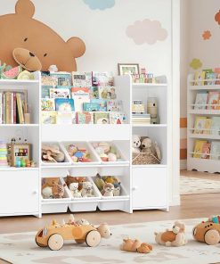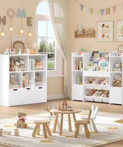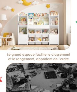 - [Créez une pièce bien rangée] : Le meuble de rangement jouets pour enfants blanche comprend 6 coffres à jouets, 4 étagère ouvertes,4 étagère à livres et 2 étagères avec portes, suffisamment d’espace pour ranger des articles de papeterie, des jouets, des vêtements, des poupées, etc. et garder la pièce propre et bien rangée par cette bibliotheque enfant