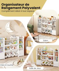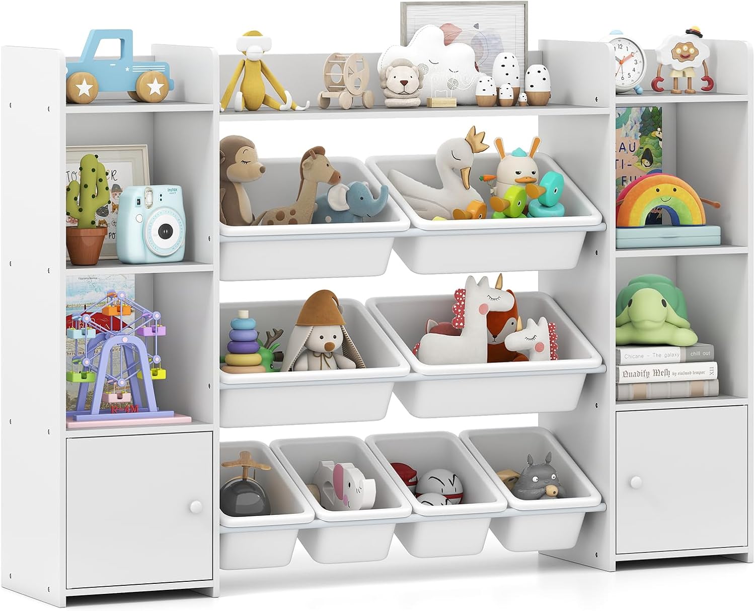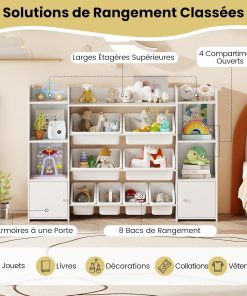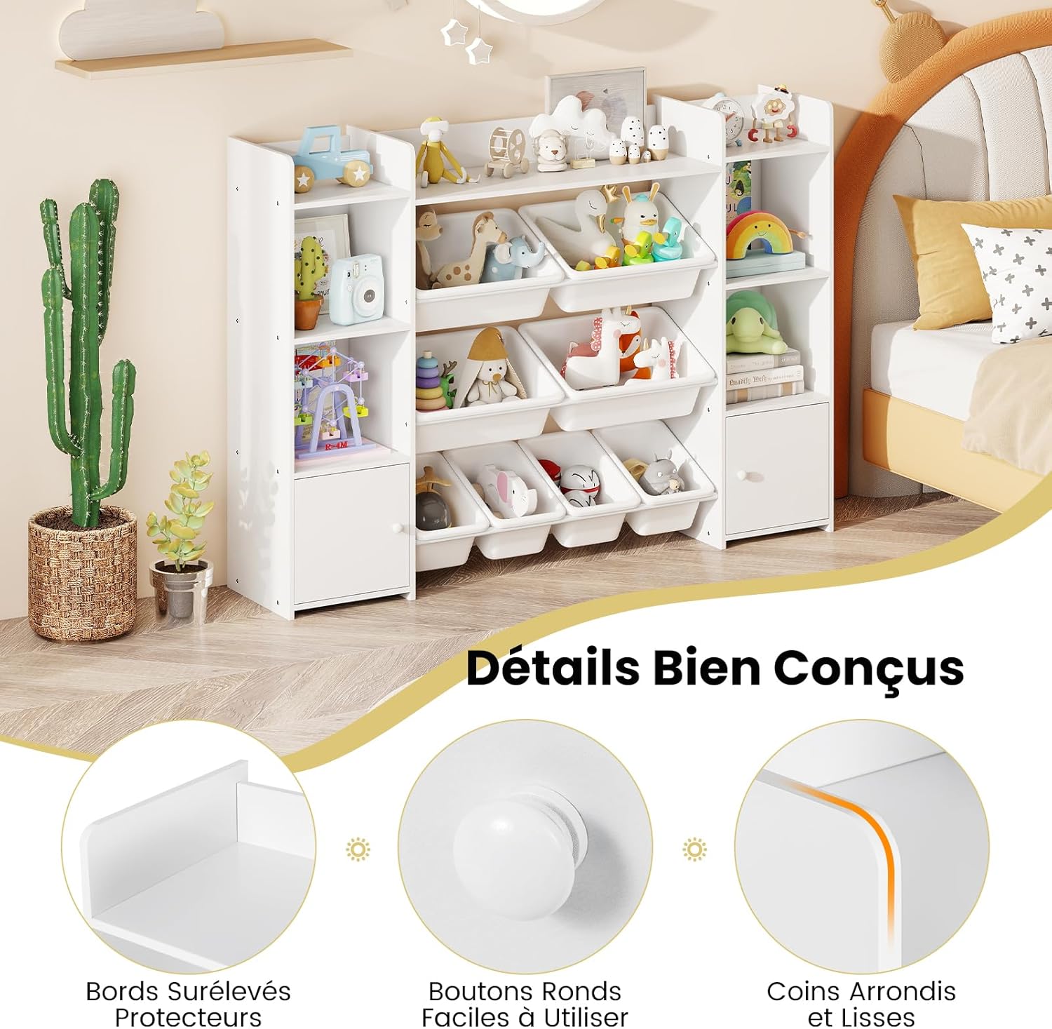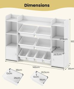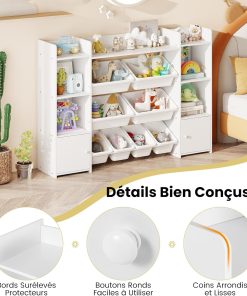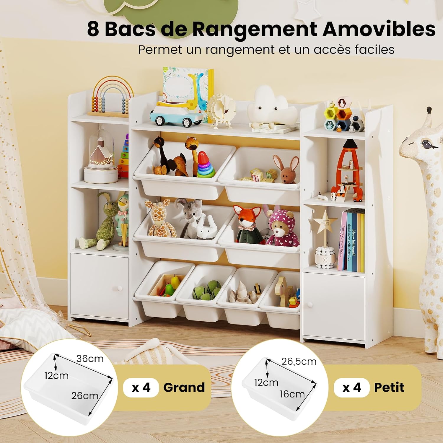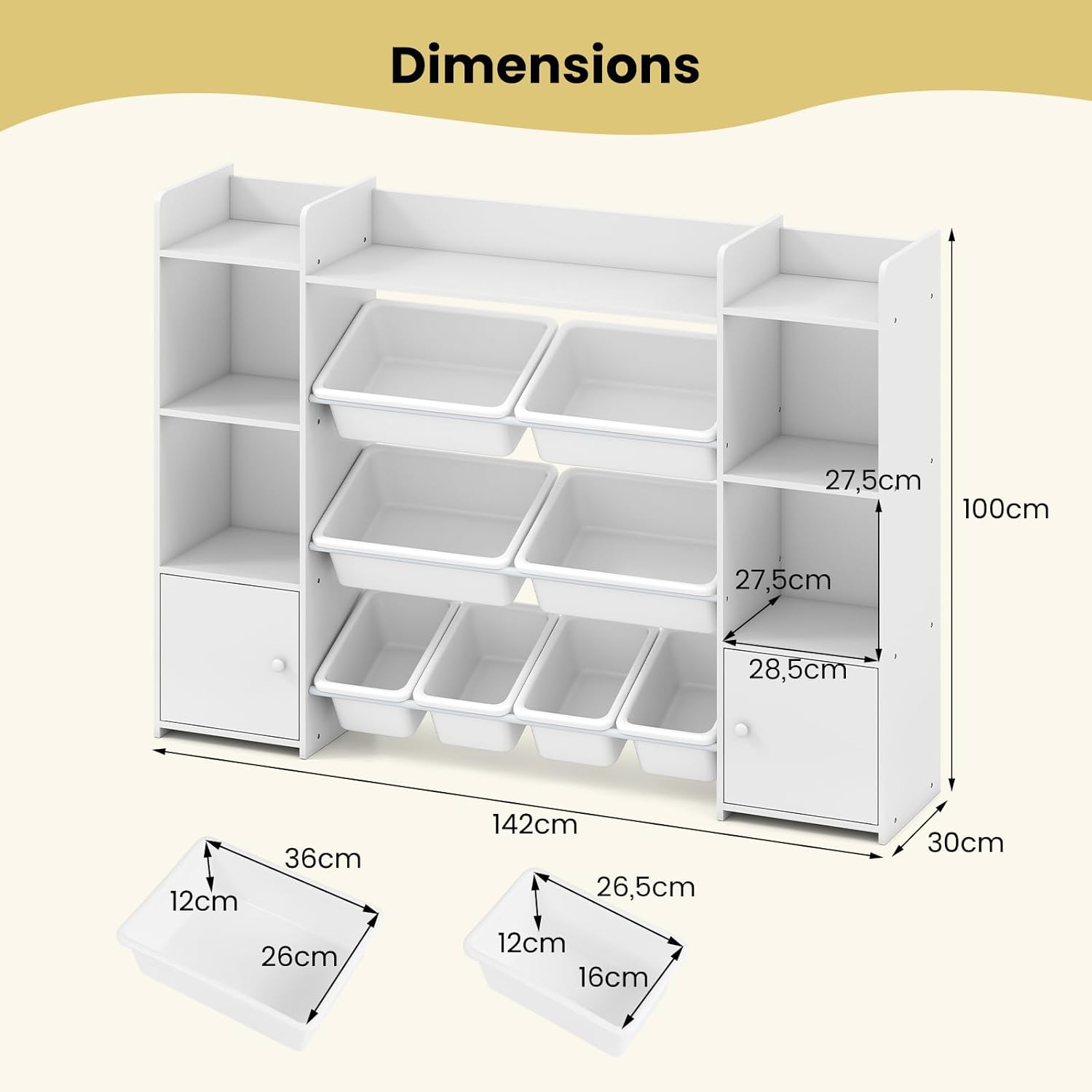 GOPLUS Meuble Rangement Jouets Enfant, Étagère à 4 Niveaux avec 6 Compartiments et 8 Bacs Amovibles, Bibliotheque Enfant pour Chambre Salon Salle de Jeu, 142x30x100cm (Blanc)