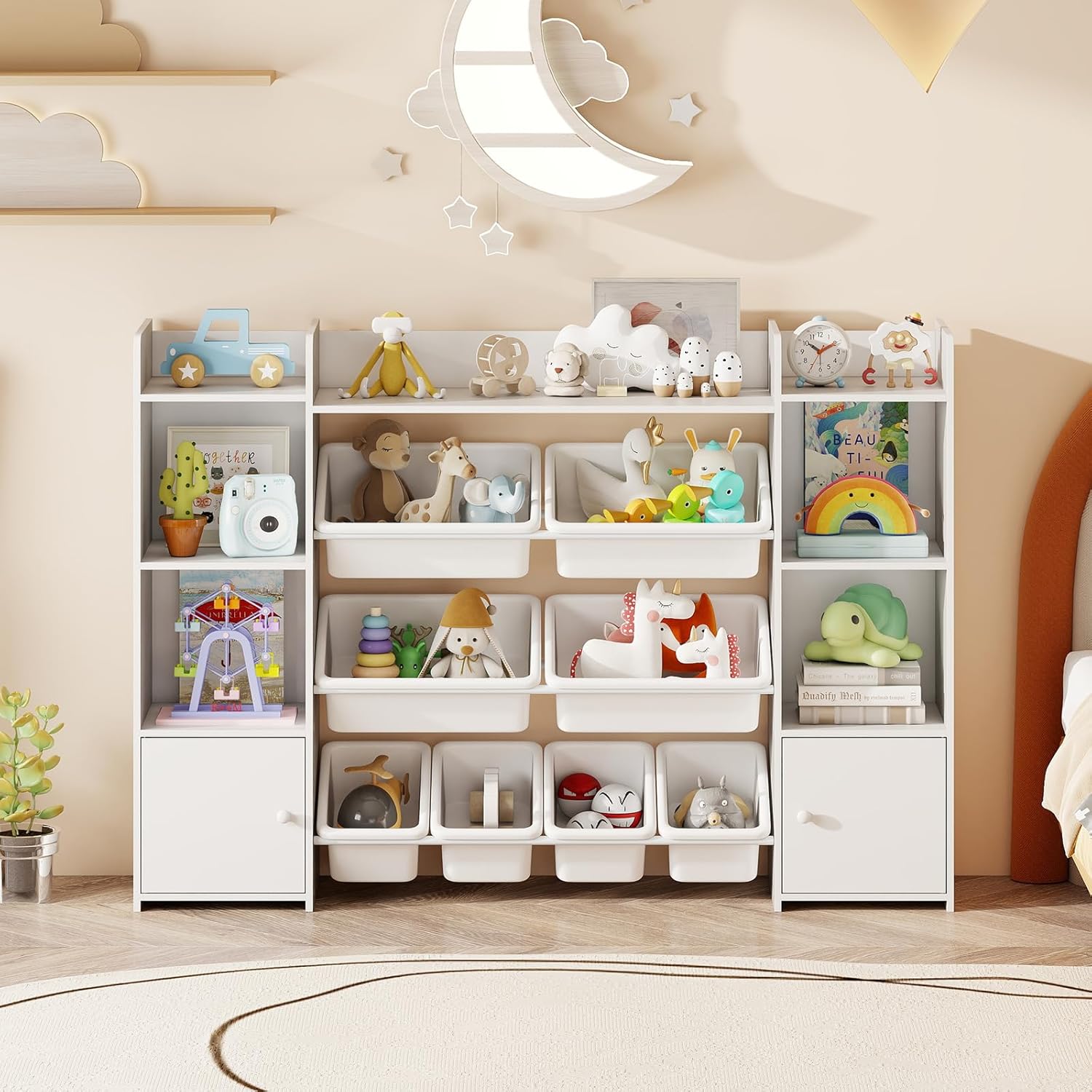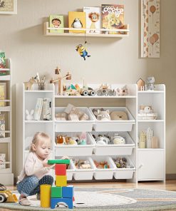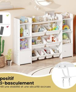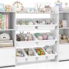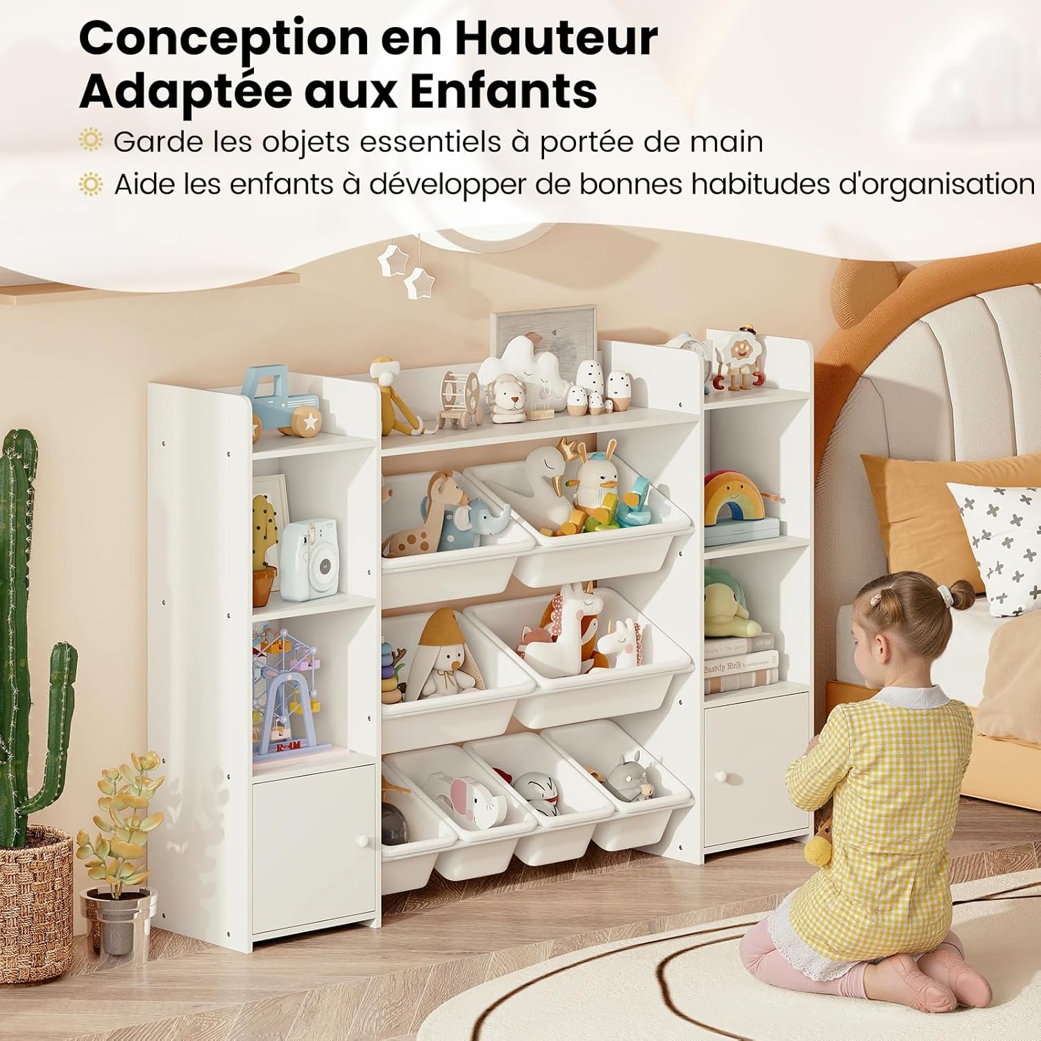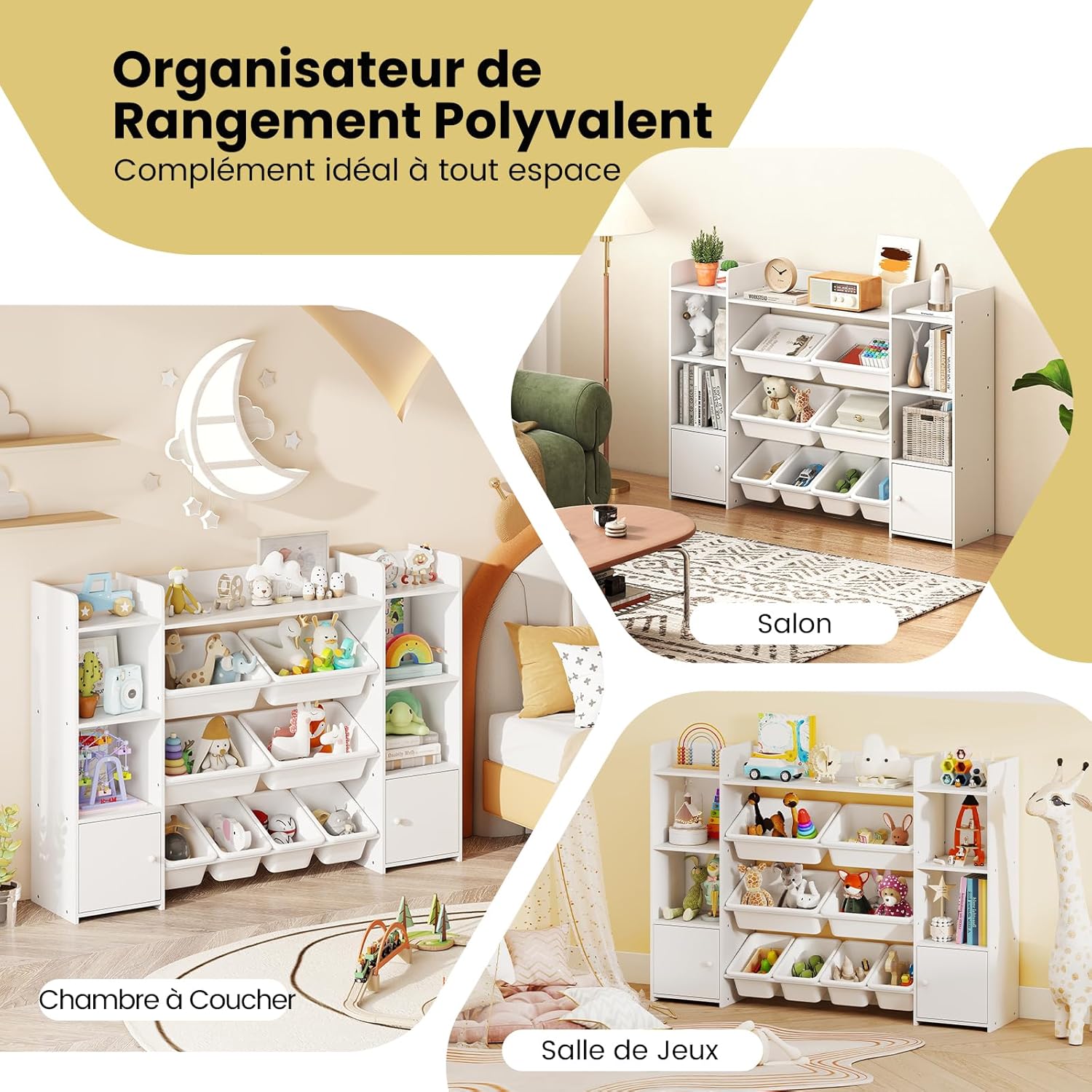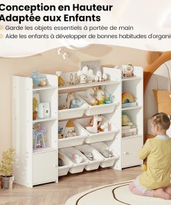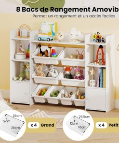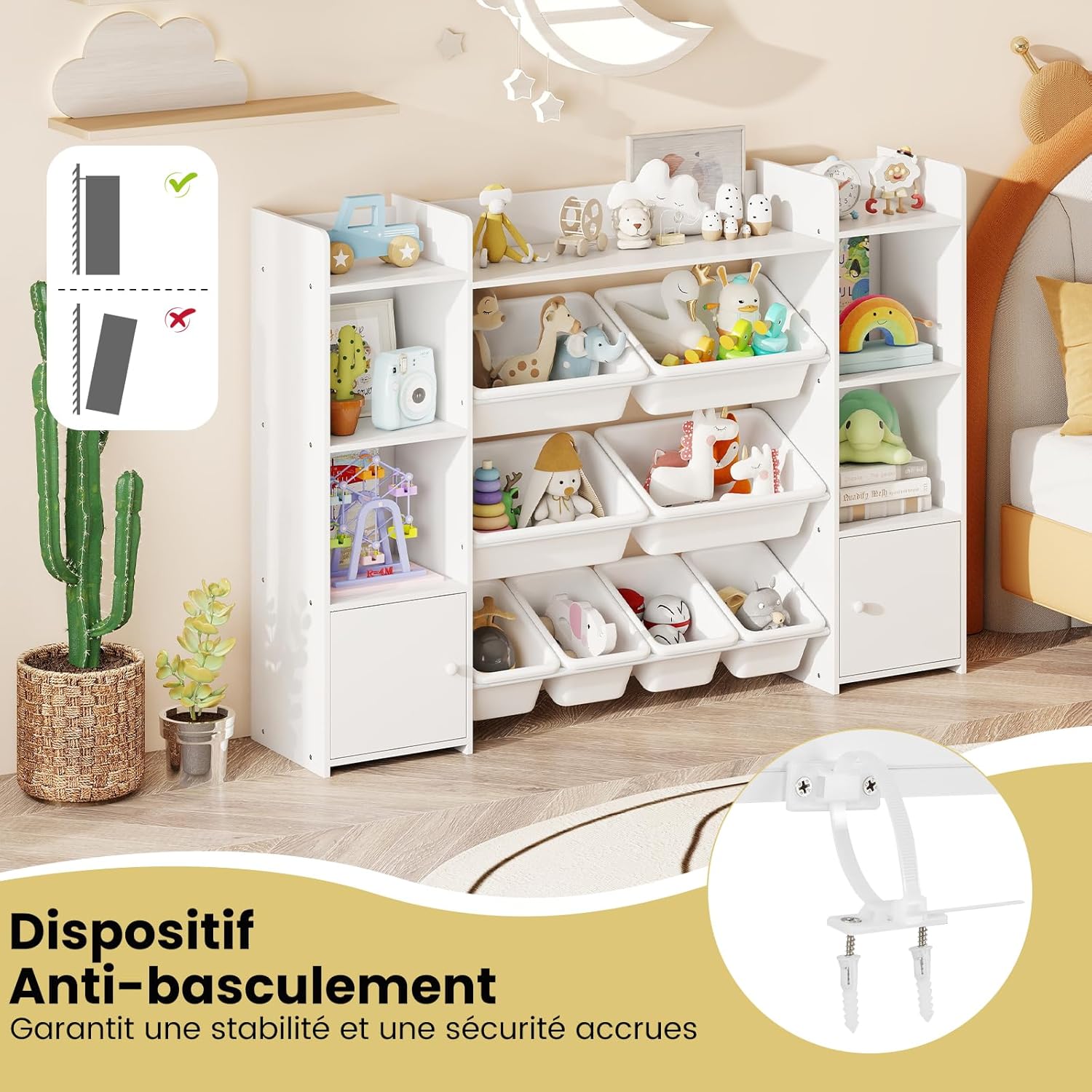 GOPLUS Meuble Rangement Jouets Enfant, Étagère à 4 Niveaux avec 6 Compartiments et 8 Bacs Amovibles, Bibliotheque Enfant pour Chambre Salon Salle de Jeu, 142x30x100cm (Blanc)
