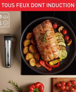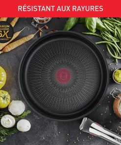 Description du produit Vous voulez vous simplifier la vie en cuisine ? Ingenio est là pour vous aider ! Grâce à sa poignée amovible, vous pourrez cuire sur la plaque de cuisson, gratiner vos recettes au four et conserver les restes au frigo. Et en plus, gagnez de la place dans vos placards grâce à son empilabilité : Ingenio, c’est bien plus qu’une poêle ! Une cuisson intensive exige une poêle capable de résister à des conditions extrêmes. Dotée du tout nouveau revêtement TITANIUM ANTI-RAYURES, la poêle Ingenio Eco Resist On offre une durabilité antiadhésive exceptionnelle qui résiste même aux ustensiles en métal et élève la cuisine à un tout autre niveau. Avertissement De Sûreté Se référer au mode d'emploi du produit ou à son safety book