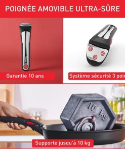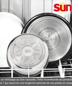 - NETTOYAGE FACILE : lavable à la main, au lave-vaisselle (sauf poignée), Tefal recommande les produits SUN Tout en 1, leur formule assurant une longévité optimale de vos poêles et casseroles
