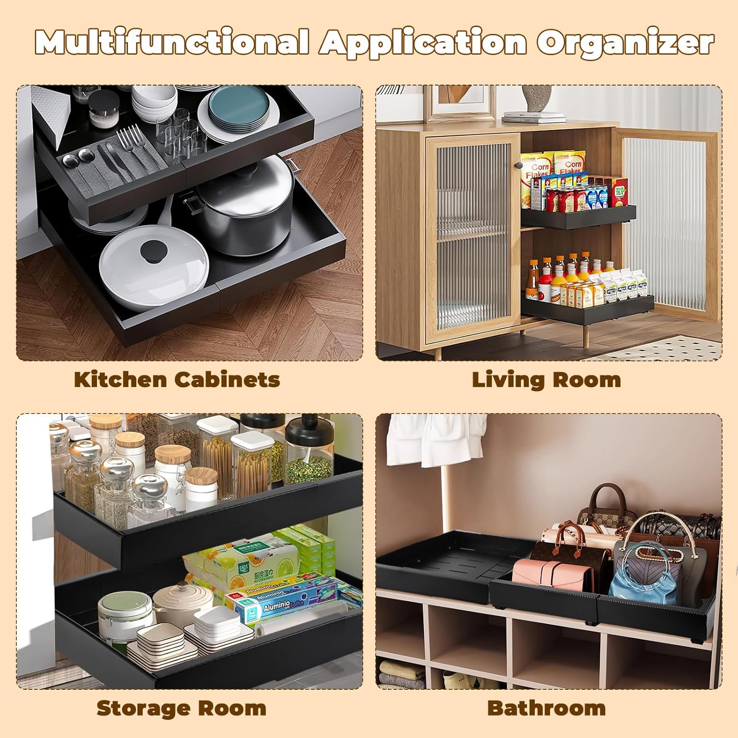 Application Multifonctionnelle: Cet organisateur de placard est une solution gain de place idéale pour la maison. Les tiroirs coulissants sont parfaits pour ranger la vaisselle, les ustensiles de cuisine, les aliments, les épices ou de petits objets. C’est un excellent organisateur pour la cuisine, le garde-manger, la salle de bain, le salon ou le bureau.